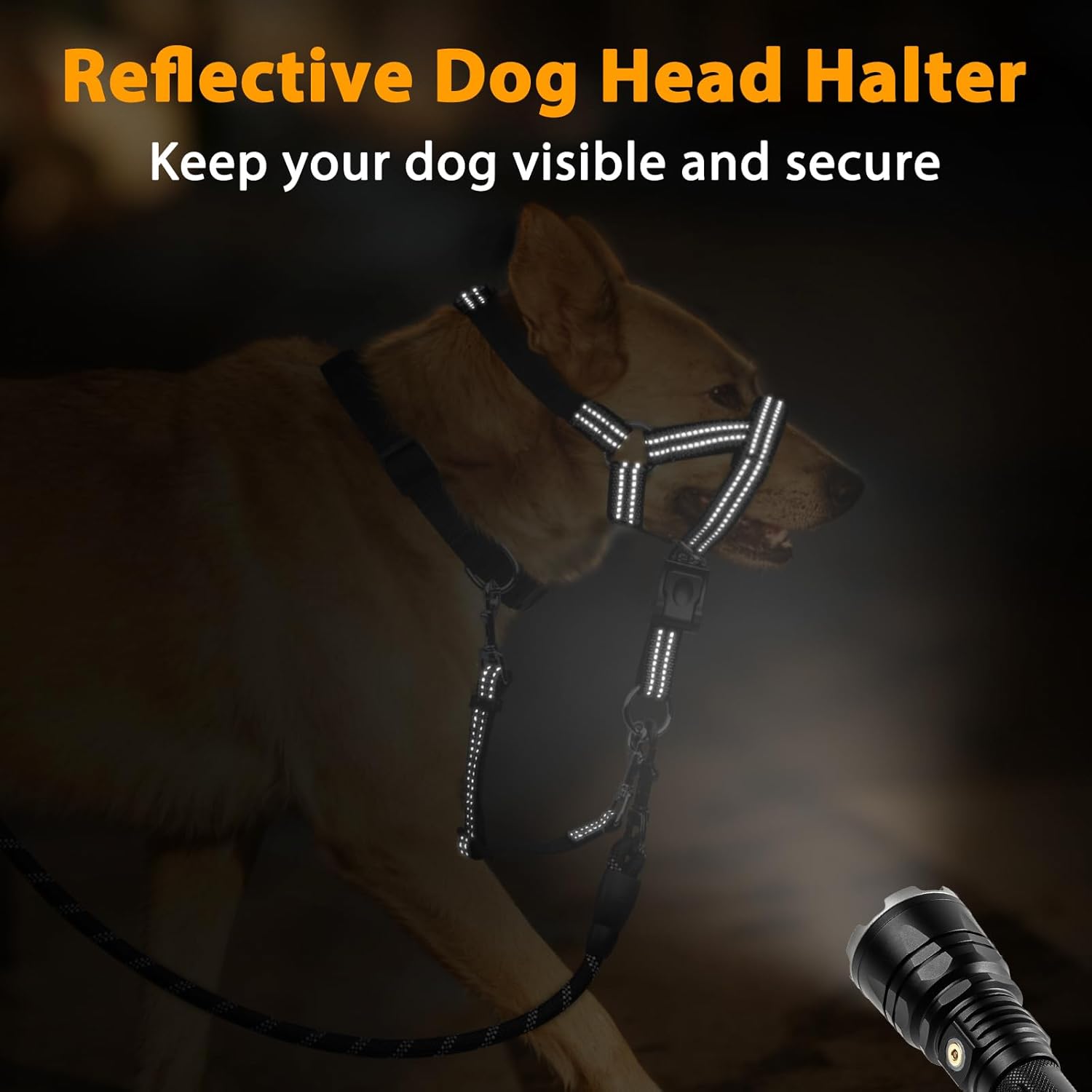 About this item Please Measure Before Buying: You are currently viewing a size XL head halter for large dog (snout cir 12-17.5” and neck cir 18-24.5”), ideal for Bernese Mountain Dog, Akita, Rottweiler, etc. Breeds are for reference only. Not for short-snout dogs (e.g., French Bulldogs, Shih Tzus). Please take your measurements carefully and select your size according to the size chart—don’t rely only on past sizing Dual-Clasp Dog Collar Connector: Designed to link your dog’s headcollar and daily collar, this double-ended safety training system prevents escapes while providing enhanced protection. Ideal for the heavy puller dog. Reinforced snap-and-go clasps attach in seconds, with a swivel design that moves freely. Stop escape attempts when your pet gets excited, lowering the risk of loss or fights Effective No-Pull Training for Better Walking Experience: Connect the traction leash to the O-ring of the dog head halter. The muzzle leash adopts a gentle guidance design to effectively reduce dog pulling behavior, making daily walks more relaxed. Muzzle leash no pull does not require harsh control; instead, it uses a scientific stress-point design to help dogs develop good walking habits Reflective Safety Design for Nighttime Outdoor Activities: Two reflective threads are sewn on the outside of the nose lead for dogs. In low-light environments (such as evening or night), a soft dog head collar can reflect surrounding light, improving the dog’s visibility and reducing safety risks during outdoor trips, suitable for morning and evening dog walking scenarios Soft Padded Material for Enhanced Wearing Comfort: The snout contact area is equipped with soft and breathable padding to avoid rubbing the dog’s skin or fur. The dog muzzle leash for pulling material is skin-friendly and sturdy, maintaining its shape after repeated use, balancing comfort and service life Simple Wearing Process to Save Operation Time: No complicated steps are required—just open the buckle for quick wearing, even for beginners. After wearing, a no-pull head collar for dogs does not affect the dog’s normal breathing, drinking, or feeding, meeting the needs of daily activities Training Tip: Pair the Barkless head halter for dogs with reinforcement using your dog’s favorite treats, and follow the included step-by-step guide. Gradually increase training time with short, reward-based sessions to ensure both safety and comfort. When not in use, store the collar out of reach of dogs (to prevent chewing) and children (it’s not a toy) to keep every walk happy and safe › See more product details