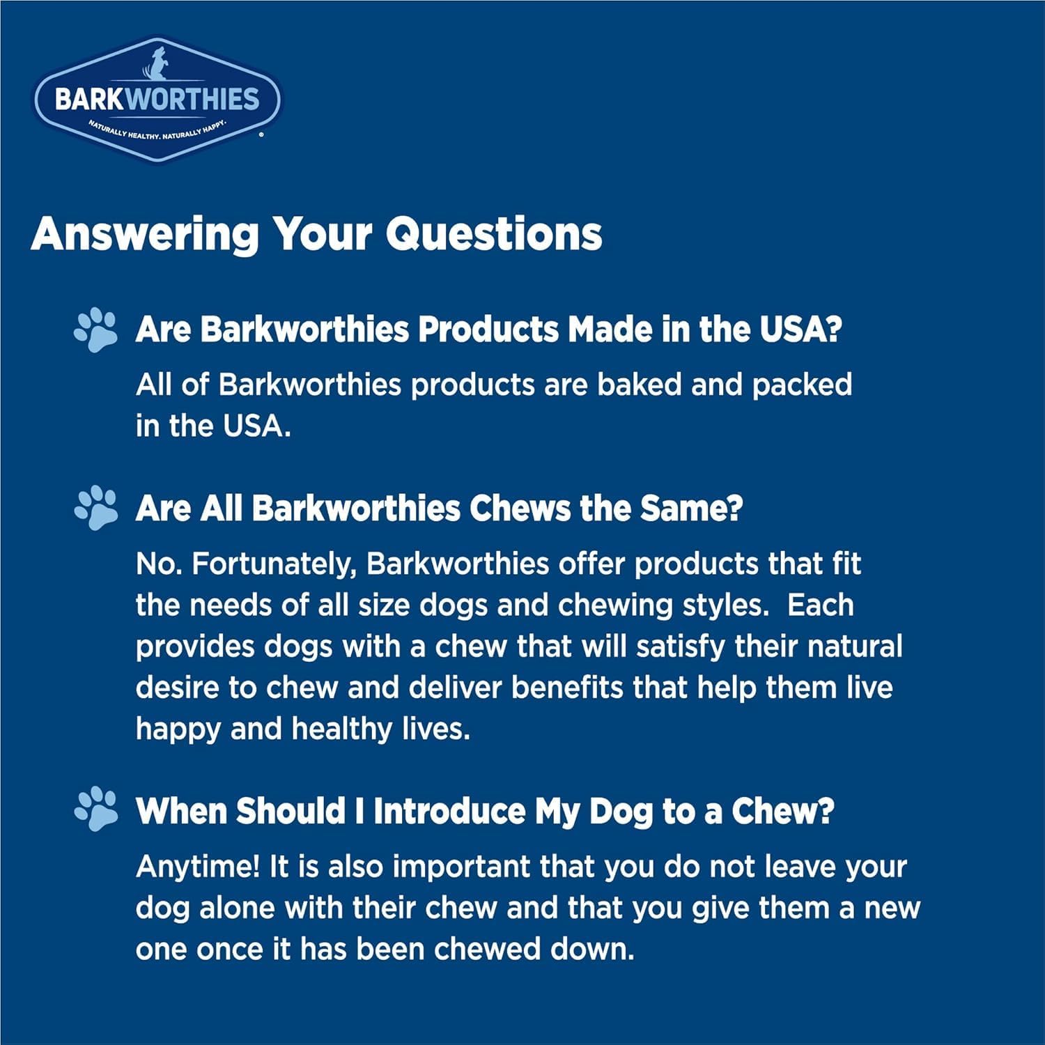 Barkworthies Bully Sticks are single ingredient chew treats for all dogs. It is a favorite natural treat that dog owners give their furry friends because they are easily digestible, non-messy, and long-lasting chews. Dogs love them because they love the taste. These premium grade Bully Sticks are a great source for protein and taurine which also helps in strengthening and cleaning dogs' teeth. Barkworthies thick bully sticks are sourced from premium quality suppliers, and made within the USA. The bully sticks are odor free and have no artificial preservatives or artificial flavors. This pack contains: x2 Barkworthies 5 ct packets with 6 inch Odorless Bully Sticks