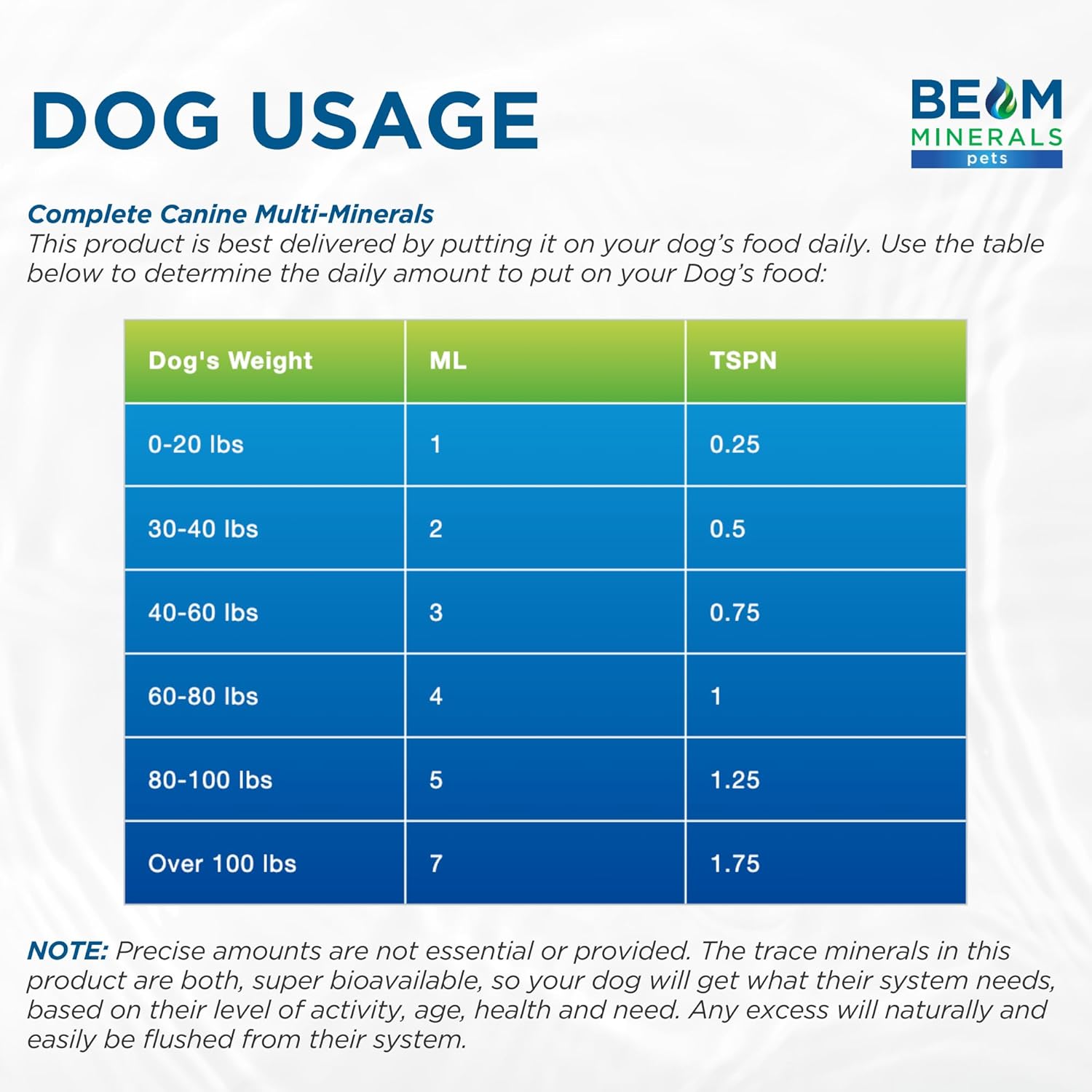 - Directions: Add 1 ml per 10 lbs to your dog's food, once a day