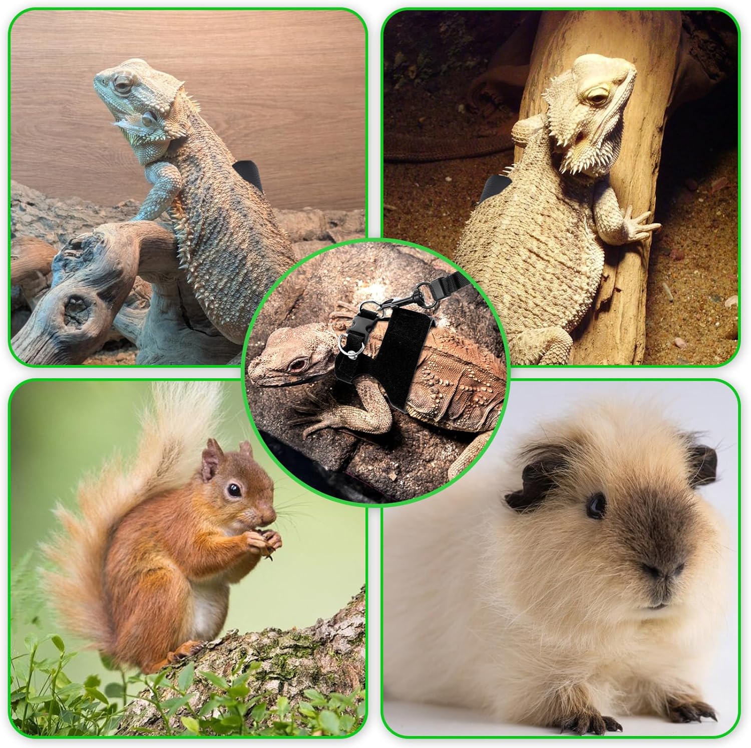 YBEATY Bearded Dragon Harness Leash 3 Size Adjustable Soft Reptile Leash Retractable Bearded Dragon Vest Training Walking Lizard Traction Rope for Outdoor Small Animal Rabbit Squirrel (Black)DescriptionCategory: Lizard LeashColor: BlackMaterial: PUFunction: Provides a comfortable, unrestrained experience for your petProduct Dimensions: Leash: 81.89 × 0.39 × 0.04 inches / 208 × 1 × 0.1 cmGross Weight: 1.38 oz / 39 gPackaging: 3 pcs × vest1 pc × leashFeatures1. The bearded dragon leash is lightweight and easy to carry. The bearded dragon harness is convenient for owners to use when taking their pets out.2. The bearded dragon vest is easy to wash. The bearded dragon accessories are easy to maintain hygiene.3. The pig hamster leash is designed with pets in mind. The rabbit harness leash reduces pet discomfort.