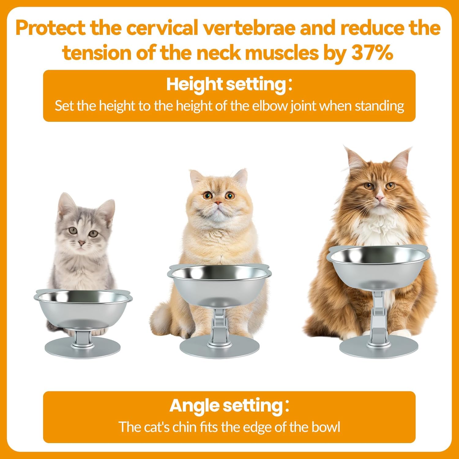 Elevated Cat Bowl Stand Set: Height & Angle Adjustable, Your Cat's Comfortable Mealtime Solution Transform your cat's dining experience with our BEAVE NIUNIU Elevated Cat Bowl Stand Set—a practical solution designed to prioritize your feline’s posture and daily comfort. This innovative Height & Angle Adjustable Raised Cat Food Bowl system features a sturdy cat bowl stand that elevates dishes to a 7.9-inch Maximum Height, encouraging natural spinal alignment to support cervical spine health and foster relaxed neck positioning. Say goodbye to your cat’s awkward bending during meals and hello to comfortable feeding moments that your pet will truly adore. Crafted from Premium Full Metal Alloy, this Elevated Cat Food Stand boasts excellent workmanship for long-lasting durability. The Sturdy and Stable Base ensures the stainless steel dishes stay securely in place, effectively avoiding tipping and spills even when your active cat eats enthusiastically. Each bowl comes with a 330ml Capacity—the ideal size for kittens, adult cats, and senior felines alike, providing ample space for meals or water without taking up excessive space in your home. Cats love the ergonomic adjustable angle of this Raised Cat Bowl, which not only supports joint comfort by reducing unnecessary strain on hips and knees but also eases occasional stomach discomfort and encourages steady eating rhythms. By fostering slower, more relaxed eating, this elevated cat food bowl helps avoid common feline mealtime issues like bloating and gas, aiding in comfortable daily feeding. The smooth stainless steel surface is Easy to Clean—simply wipe with a damp cloth or rinse under water—resisting odors and corrosion for hassle-free daily maintenance. This all-in-one set is the perfect fit for any cat feeding setup, whether you need a Cat Food Bowl Stand, Raised Cat Bowl Stand, or Elevated Cat Food Stand. The integrated Cat Bowl Holder keeps dishes firmly fixed to the stand, ensuring consistent feeding height for every meal, while the sleek full-metal design blends seamlessly with any home decor—functional and stylish in one package. Why Choose Our Elevated Cat Bowl Stand Set? ✅ Pet-Friendly Ergonomic Design: Comfortable eating position that cats instinctively prefer✅ Cervical Spine & Joint Comfort: Fosters relaxed neck positioning and eases joint strain for senior cats✅ Durable Full Metal Construction: Premium alloy material with excellent workmanship for long-term use✅ Stable & Tipping-Avoid Base: Reliable design even for energetic, food-enthusiastic cats✅ Perfect Size Details: 330ml capacity bowls + 7.9-inch maximum adjustable height, fit for all cat sizes✅ Hassle-Free Cleaning: Smooth stainless steel surface resists odors and corrosion✅ High Cost Performance: Affordable price without compromising premium quality Whether you’re caring for a playful kitten, an adult cat, or a senior feline, this Cat Bowl Set is the ideal upgrade for more comfortable, enjoyable mealtimes. Order now and give your beloved cat the gift of comfortable, spine-friendly feeding!