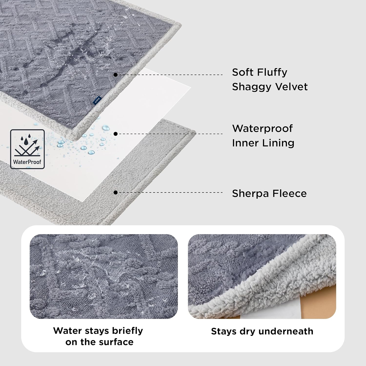 About this item Waterproof & Leakproof Protection: The innovative waterproof inner lining prevents liquids from leaking through the blanket, ensuring your pet stays dry and your furniture remains clean. Suitable for dogs, cats, and kittens, this versatile pet blanket is perfect for both indoor and outdoor use. Classic Reversible Style: Available in two elegant shades, our warm pet blanket showcases a timeless tufted cable pattern that adds a touch of texture to your existing home decor. The double-sided reversible design features two distinct textures and colors, while neat and tight edge stitching ensures strength and durability for long-lasting use. Comfort, Softness & Durability: Our Waterproof Jacquard Coral Fleece Pet Blanket features a cozy sherpa layer on one side and a fluffy shaggy velvet layer on the other, providing a soft and thick, yet lightweight surface. The waterproof design keeps your cats and dogs comfortable and warm by preventing them from becoming overly humid or cold. Multipurpose Protection: Protect your couch, bed, and other furniture from chewing, scratching, and shedding while keeping your pet cozy and comfortable. This blanket also helps keep unwanted pet hair and fur off sofas and couches, making it an essential accessory for pet owners. Easy Cleaning & Convenient Portability: Simply machine wash the blanket in cold water and dry at low temperature for hassle-free cleaning. Its lightweight and handy design allows you to take it with you to the beach, on travels, or for camping adventures with your furry friend. › See more product details