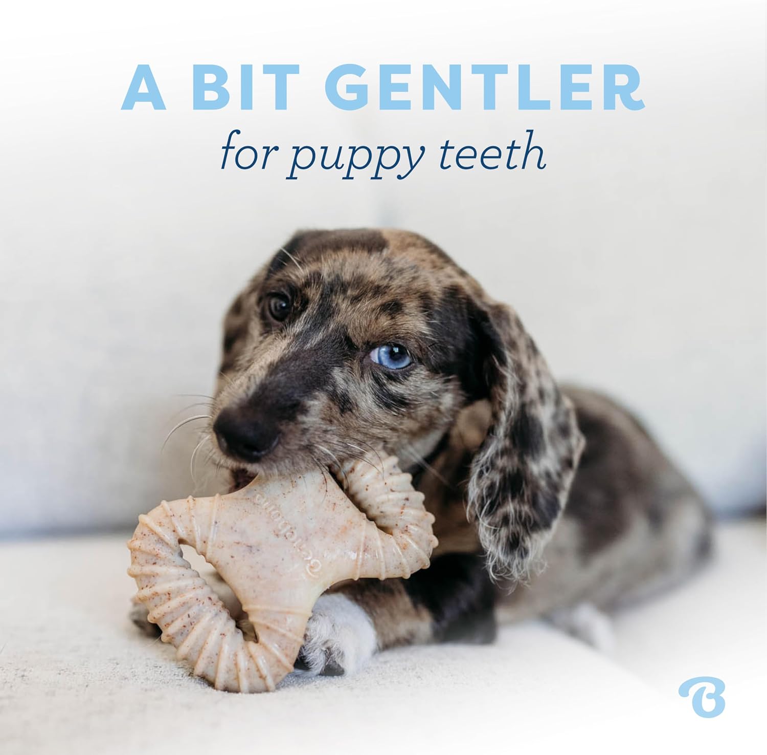 The Benebone Puppy Dental Chew/Wishbone Puppies love to chew and the dig real bacon, just like the rest of us. They deserve better than rubbery chew toys that look like they’re for babies. About Benebone At Benebone, we started with the premise that puppies experience scent and flavor in a way we can’t even grasp. So we ditched the neon colors and loud squeaks. Inspired by a dog’s powerful sense of smell, we developed long-lasting durable chews that are jam-packed with real bacon. Once your beloved puppy takes a bite of our USA-made chews, he’ll be hooked. We’re Obsessed with Safety Too Wonder if Benebone is right for your dog? Here’s what you need to know. Since it’s hard, it’s important that your pup has strong teeth. If you’re unsure, check with your vet. Nobody likes an unexpected trip to the dentist. Keep an eye out for wear and tear. Within a month or so, we find that most dogs chew Benebone into submission. See the wear page on our website for helpful photos to determine when to replace yours. Keep away from households with peanut or other allergies. What’s Inside? Nothing but Nylon and Real Bacon for Tantalizing Flavor