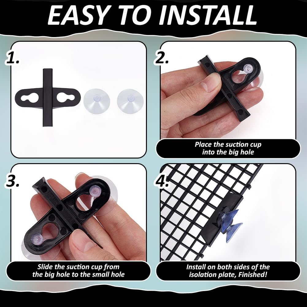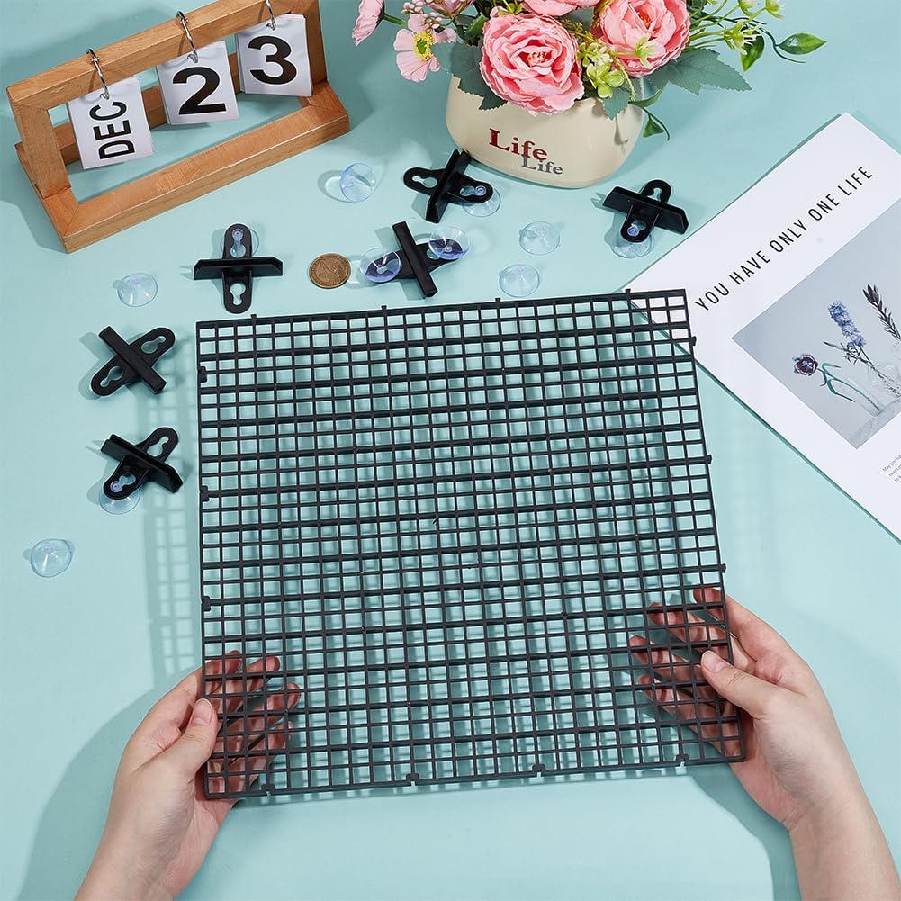 BENECREAT Plastic Fish Tank Divider with Suction Cups, Aquarium Isolation Grid Board for Separating Different Fish, Black