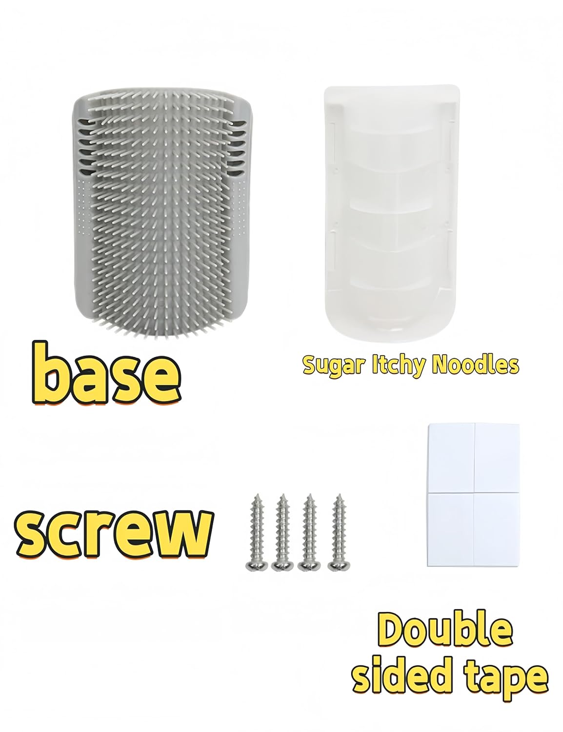 Product Name: Cat Self Beauty Device Quantity: 2 Color: Gray Size: 3.35 * 5.12 inches Description: The U-shaped design provides a closer contact between the corners of the wall, with a larger area for scratching and brushing, making it more comfortable for cats to rub.
