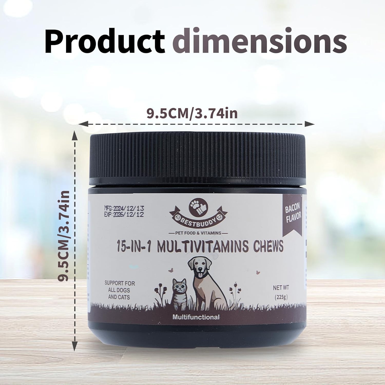 About this item 15-in-1 Multivitamin for Complete Pet Health – Supports immune system, joints, skin, coat, digestion, and more in one easy-to-use supplement. For Dogs & Cats of All Sizes – Ideal for pets of all breeds, providing essential nutrients for overall wellness. Boosts Joint & Immune Health – Includes key ingredients to enhance mobility, reduce inflammation, and strengthen immunity. Promotes Healthy Skin & Coat – Packed with Omega-3, Biotin, and Zinc to reduce shedding and promote a soft, shiny coat. Made in the USA with Natural Ingredients – Non-GMO, safe, and effective formula that your pets will love. Easy-to-Use: Comes in a convenient 225g size with a delicious, pet-friendly flavor, making it easy to add to your pet's daily routine. Suitable for All Pets: Ideal for dogs and cats of all sizes, ages, and breeds. Safe & Natural Ingredients: Made with high-quality, safe ingredients to ensure your pet gets the best care. Enhances Energy & Vitality: Helps maintain your pet's energy levels and supports overall wellness for a happy, active life. Show more › See more product details