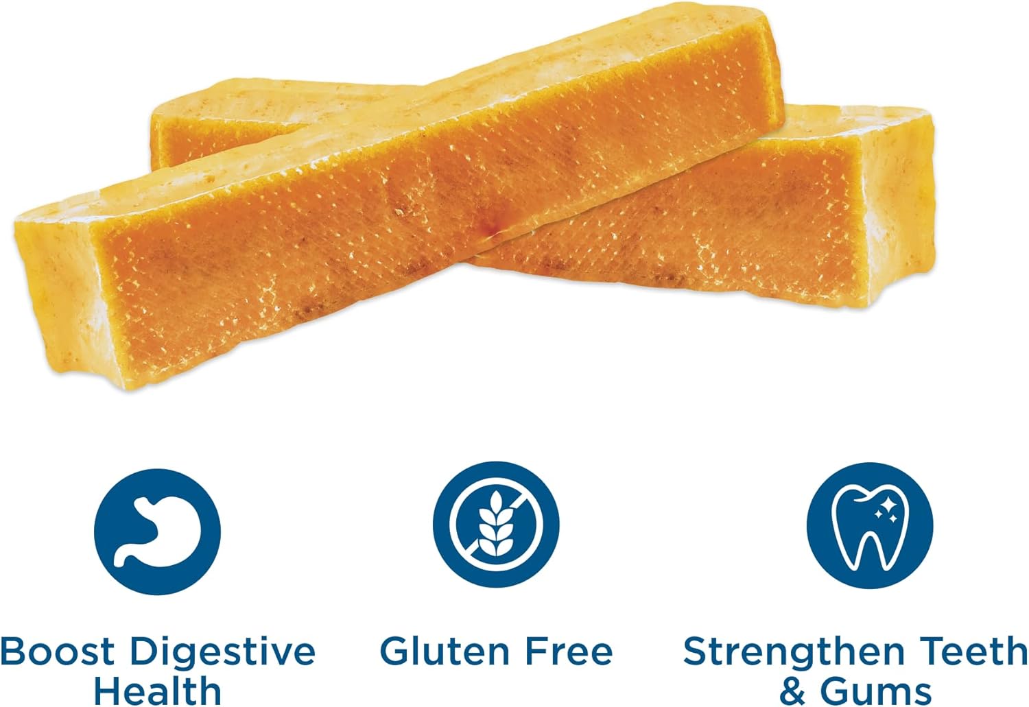 About this item No-rawhide dog chews: Our dog chew sticks, sometimes referred to as "yak bones" are safe, healthy dog chews for canine companions of all sizes. Choose from our small, medium, large or extra-large Himalayan cheese sticks for dogs. 100% natural: These dog chews for large dogs are an all natural dog treat, made from Himalayan yak milk and cow milk for a creamy consistency and a delicious flavor that your dog will go crazy for. These high-quality Himalayan yak cheese dog chews are 100% natural, and contain no artificial preservatives, colors, flavors, or other additives. Promotes dental health: Durable and long-lasting, Himalayan Gold Dog Chews scrape away tartar and plaque from the gumline through chewing action and saliva generation. They promote good dental health and provide hours of tasty entertainment. Natural dog chews: Our yak cheese Himalayan dog chews are made with all natural yak milk and all natural cow milk. Each large dog chew is tantalizingly tough, with a unique flavor that dogs love! Excellent alternative to rawhide: These long lasting dog chews for large dogs are an excellent alternative to rawhide and are safer than traditional dog chews. Our yak cheese chews are rawhide-free, and free of any added hormones and unhealthy chemicals. › See more product details