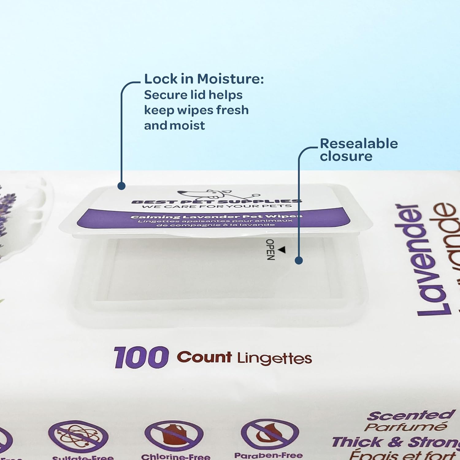 About this item DEEP CLEANSING: Remove dirt from paws, ears, and other areas with dog grooming wipes. These dog wipes for paws and butt keep your pet's coat clean, reducing dryness, itchiness, and odors HYDRATING FORMULA: Lavender, Vitamin E, and cucumber extract in dog cleaning wipes nourish and hydrate DURABLE AND GENTLE: 8” x 9” dog cleaning wipes are durable against tough dirt yet gentle on sensitive areas VARIETY OF OPTIONS: Use dog grooming wipes in scented and unscented varieties to clean and deodorize. Dog wipes for face and butt leave pets refreshed from head to tail EASY-TO-CARRY PACKS: The compact, resealable pouch holds dog grooming wipes. Ideal for home or on the go, great for hikes or trips with these dog paw wipes › See more product details