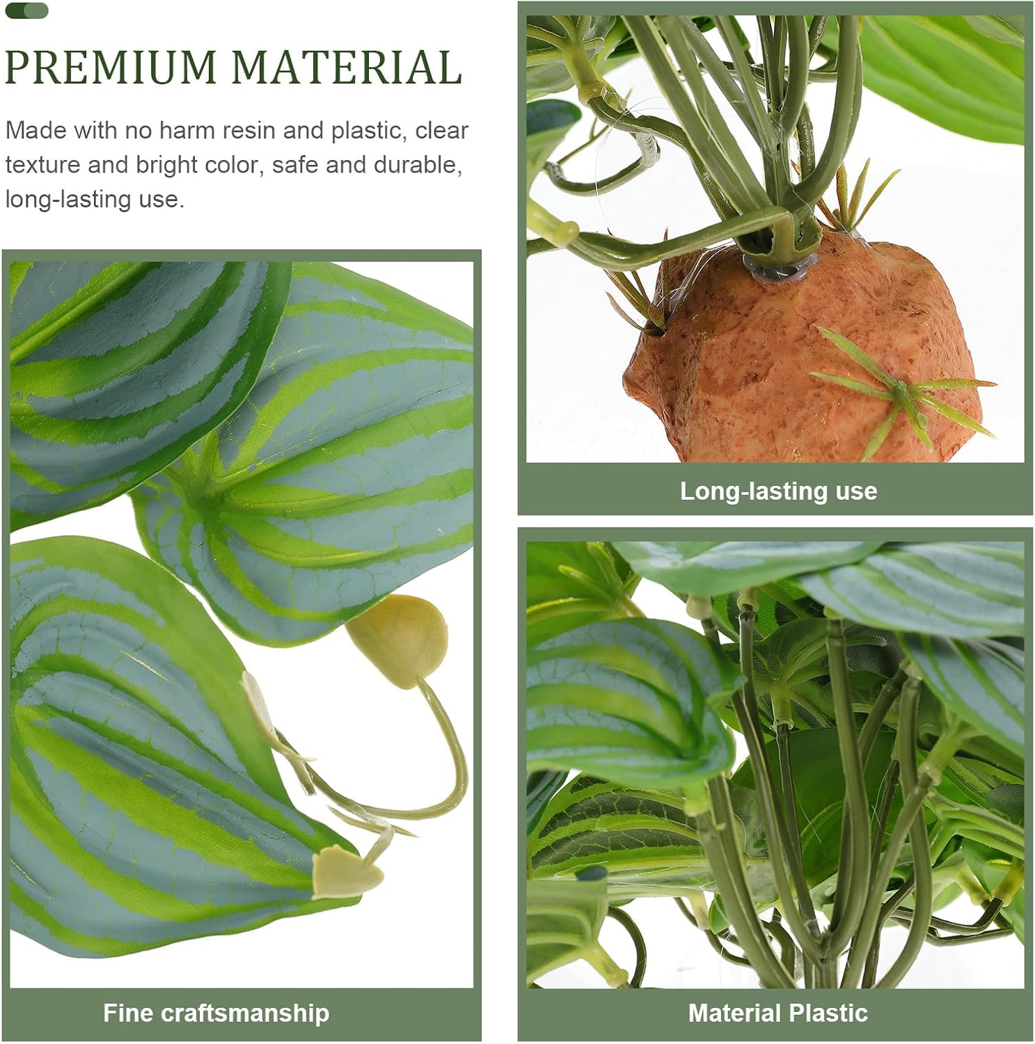 Package Include 1 x simulated plant Characteristics -Size:7.00X6.00X14.00cm/2.75X2.36X5.50in -Material:Plastic, resin -Color:Green -Product Info:Feeding box simulated plants - Provides enjoyment for your pet. It doesn’t your pet, and give your pet a place to sleep, rest, play, breed, etc jungle theme decorations lizard tank. - Natural-looking simulation plant leaf, perfect for reptile tank decoration. It looks really turtle tank plants. - Creating a dynamic environment with fun hiding spots and exciting obstacle for your pets reptile tank accessory. - Designed with a base, make it more easy to install it on your fish tank or reptile tank reptile terrarium landscaping. - Suitable for reptile decorations, reptile habitat, aquarium fish tank decorations, home decoration, etc terrarium background.Goods Descriptionreptile decorations for tank This simulation reptile plant is easy to install and use.terrarium decor reptile Simulation design lifelike plant decoration makes with habitat more vibrant.small terrarium plants Convenient and simple operation, freely conceive the placement position, the shape is very good.artificial plants terrarium It is great to decorate your reptile box