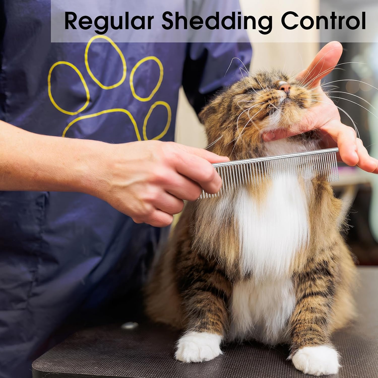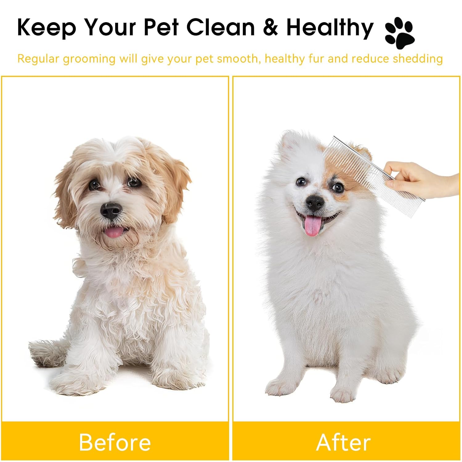 About this item 【3 Pcs Grooming Set】Total 3-piece dog comb, including 1 large combs (7.4 x 1.57 in) and 2 small combs (6.3 x 1.2 in), ideal for grooming matting, removing tangles, knots, dander and dirt on dog and cat, such as greyhound poodle doodle 【Sturdy & Durable】Made of premium stainless steel, these dog combs is rust-proof, anti-static, and wear-resistant. Their sturdy structure ensures long-lasting performance, even with frequent use on dense or curly hair 【Gentle Rounded Teeth】Each comb features smooth, rounded stainless steel teeth that glide through fur without scratching the skin, offering a safe and comfortable grooming and massage experience for dogs, cats, and other furry pets 【Dual-Spaced Teeth】Wide and narrow teeth spacing enables versatile grooming. Use narrow teeth for sensitive areas like around the eyes, ears and mouth, and wider teeth to detangle stubborn knots in thicker fur 【Compact & Lightweight】The lightweight, portable cat brush fits easily in your car or bag, making it easy to groom your pet at any time and remove burrs, pollen, and debris during walks or camping trips › See more product details