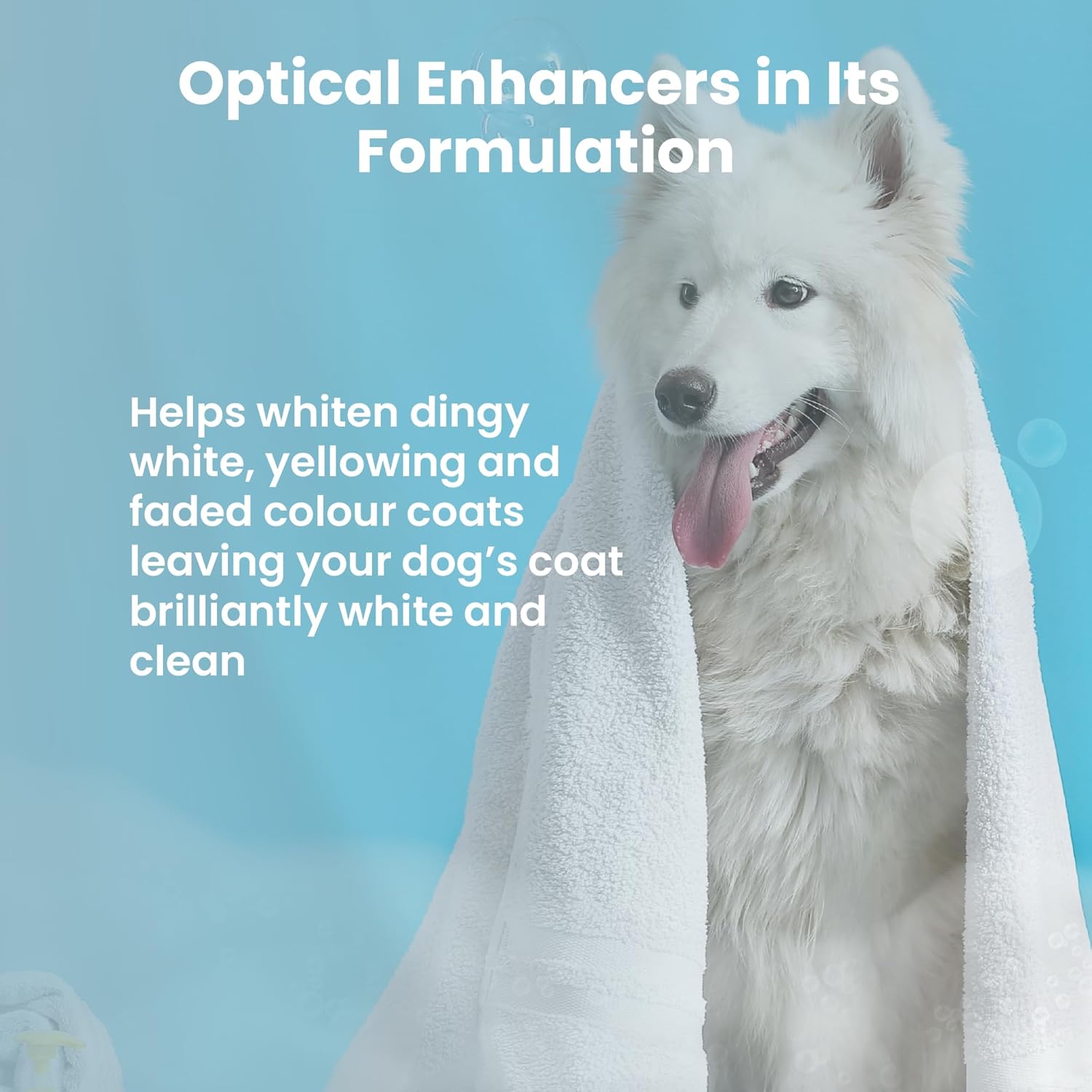 About this item SPECIAL FORMULA FOR WHITE COATS – Diamond White Shampoo is specifically designed for dogs with white and light-colored coats. It helps remove stains, yellowing, and dullness, bringing out your pet’s natural bright, clean, and vibrant white fur. Perfect for maintaining that fresh, bright appearance! LONG-LASTING COCONUT FRAGRANCE – Our unique formula not only whitens but also leaves a pleasant, long-lasting coconut fragrance. Your dog will smell heavenly for hours after bath time, with no overpowering scents—just fresh, clean fur that stays fragrant all day. GENTLE, NON-IRRITATING FORMULA – Unlike harsh bleach or peroxide shampoos, Bio PetActive Diamond White Shampoo is safe for your pet’s skin. With gentle ingredients, it moisturizes and protects your dog’s fur while eliminating stains, making it ideal for sensitive skin. EASY TO USE AND EFFECTIVE – Simply dilute the shampoo 1:5 with water, apply to your pet’s coat, and let it sit for 3–5 minutes for best results. This easy-to-use formula provides a deep clean that removes odors, brightens white coats, and improves the overall appearance of your dog’s fur in no time! SAFE & pH BALANCED – Developed with care, our shampoo is pH balanced and free of harsh chemicals. It’s safe for dogs of all sizes and is a trusted choice for pet parents who want to maintain a healthy, shiny coat without compromising on safety. › See more product details