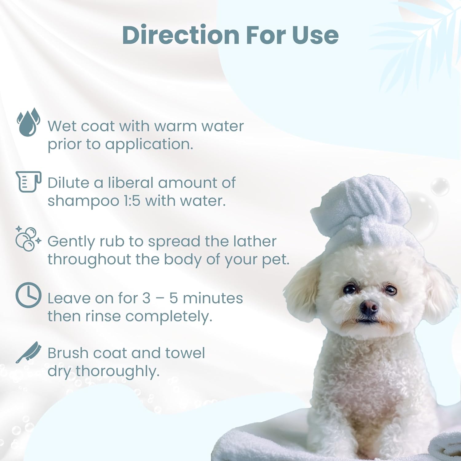 - Directions: Dilute 15 with water, apply to pet's coat, let sit for 3-5 minutes.
