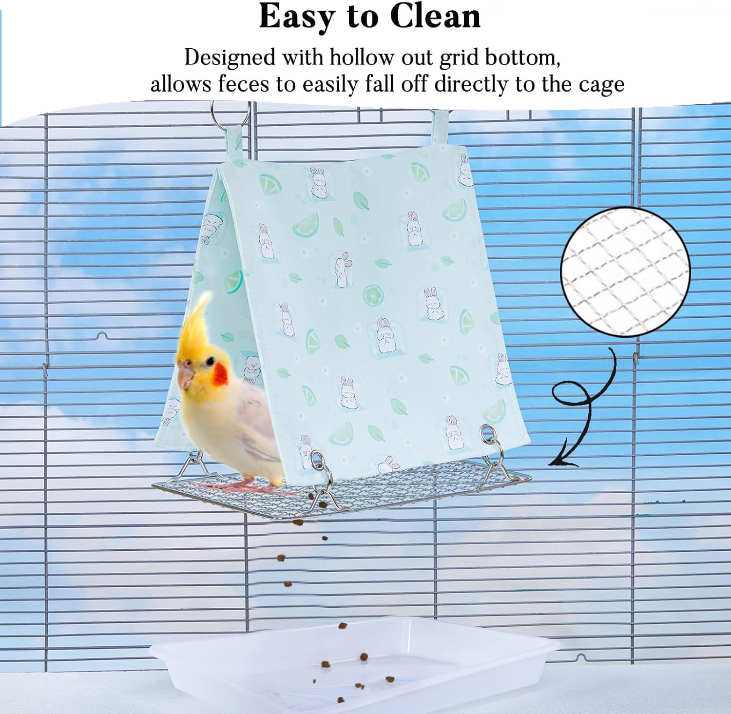 • Bite-resistant The fabric of parrot bed for cage ensures bird's beak won't damage it easily, maintaining integrity over time and withstanding bird's nibbling. Moreover, it has two soft mats, providing comfort in winter and coolness in summer
