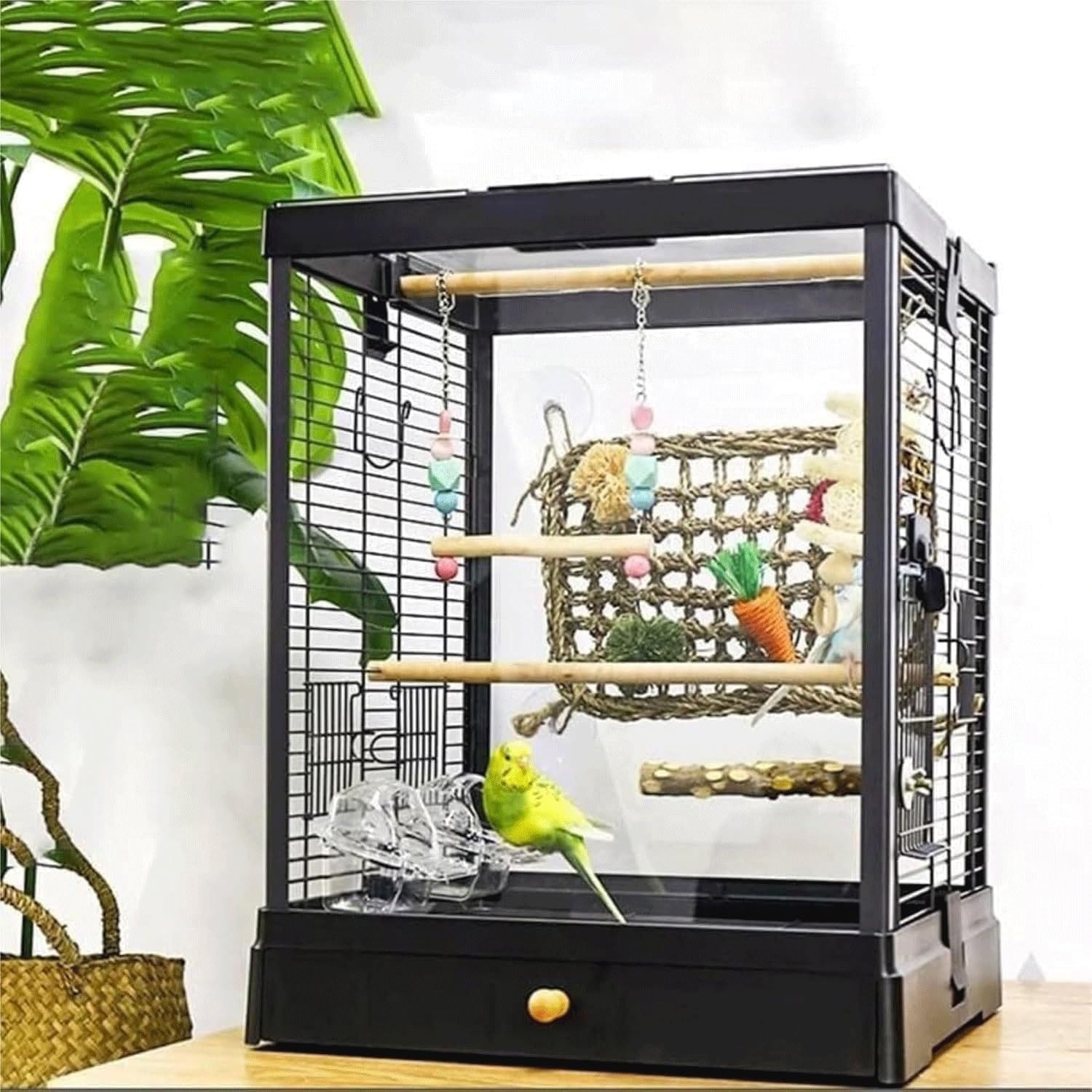 The advantages of our birdcage:High quality and reliable, beautiful and environmentally friendly, strong load-bearing capacity, good stability, fine craftsmanship, and long-term use without deformation or cracking. The practical cage bottom tray easily keeps the area around the birdcage clean and tidy.The stable birdcage structure provides safety protection, is aesthetically pleasing and lightweight, easy to carry, and looks as good as new even after long-term use. It is scratch resistant, weather resistant, and has a smooth surface that is easy to clean, effectively resisting daily wear and environmental erosion.The spacious interior space ensures that your pets have enough space for activity, rest, and play, not only ensuring the safety of birds but also keeping them active, thereby extending their lifespan.Product name: Bird Cage/Bird Aviary/Birdcage/Flight Birdcage/Parrot Cage/Parakeet Cage/Budgie Cage/Cockatiel Cage/Pet Bird Cage/Bird Carrier/Tall Tiel Cage/jaulas para pájaros/Big Bird Cage/Small Bird Travel Cage/Travel Carrier CageProduct material: metal sheet, iron wire, tempered glass, PP/PS/PH, woodMain process: electrostatic spraying, injection moldingLine spacing: about 11.13mmWire diameter: the thickest about 2.52mmThe thinnest: 1.81mmThe package includes:1 x Bird Cage2 x wooden standing sticks2 x food cups2 x top cover buckles2 x bottom plate bucklesFriendly reminder:1. This product does not include any other items except as shown in the product image.2. Due to manual measurement, please allow for an error of 2-3%.3. Due to lighting and shooting angles, there may be slight errors and color differences. Thank you.