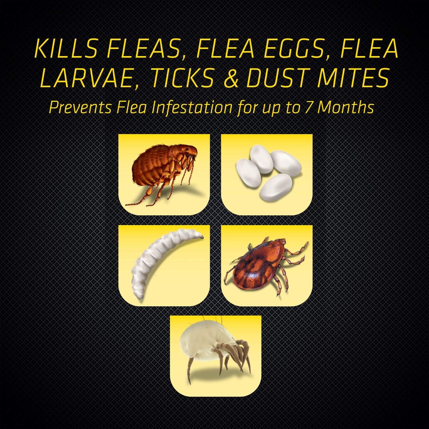 Insects invading your corner of the world? Whatever insect you're fighting, Black Flag products are dedicated to providing the tools you need to regain control. With formulas that act fast and never back down, Black Flag insect controls have been arming homeowners in the battle against invading bugs for more years than any other brand.Black Flag Flea & Tick Aerosol For Upholstery & Pet Bedding Plus Growth Regulator Home Treatment kills fleas, flea eggs, flea larvae and ticks indoors. Use it for spot treatment on carpets, upholstery, drapes and pet bedding. This formula contains Nylar insect growth regulator to break the flea life cycle by preventing fleas from developing into biting adults for up to 7 months. It also controls carpet beetles and dust mites. When used as directed, this product will not stain furnishings or carpeting. If ticks are present, spray directly to kill. For long-term flea control, apply 16 ounces per 300 square feet. Use as part of a comprehensive flea and tick treatment plan that includes coordinated treatment of the home, yard and pet. Treatment and prevention work together, so it's key to treat all three areas simultaneously. This integrated pest management approach involves inspection, cleaning and targeting eggs, larvae and adults with the appropriate insecticides. Follow-up treatments are almost always necessary.