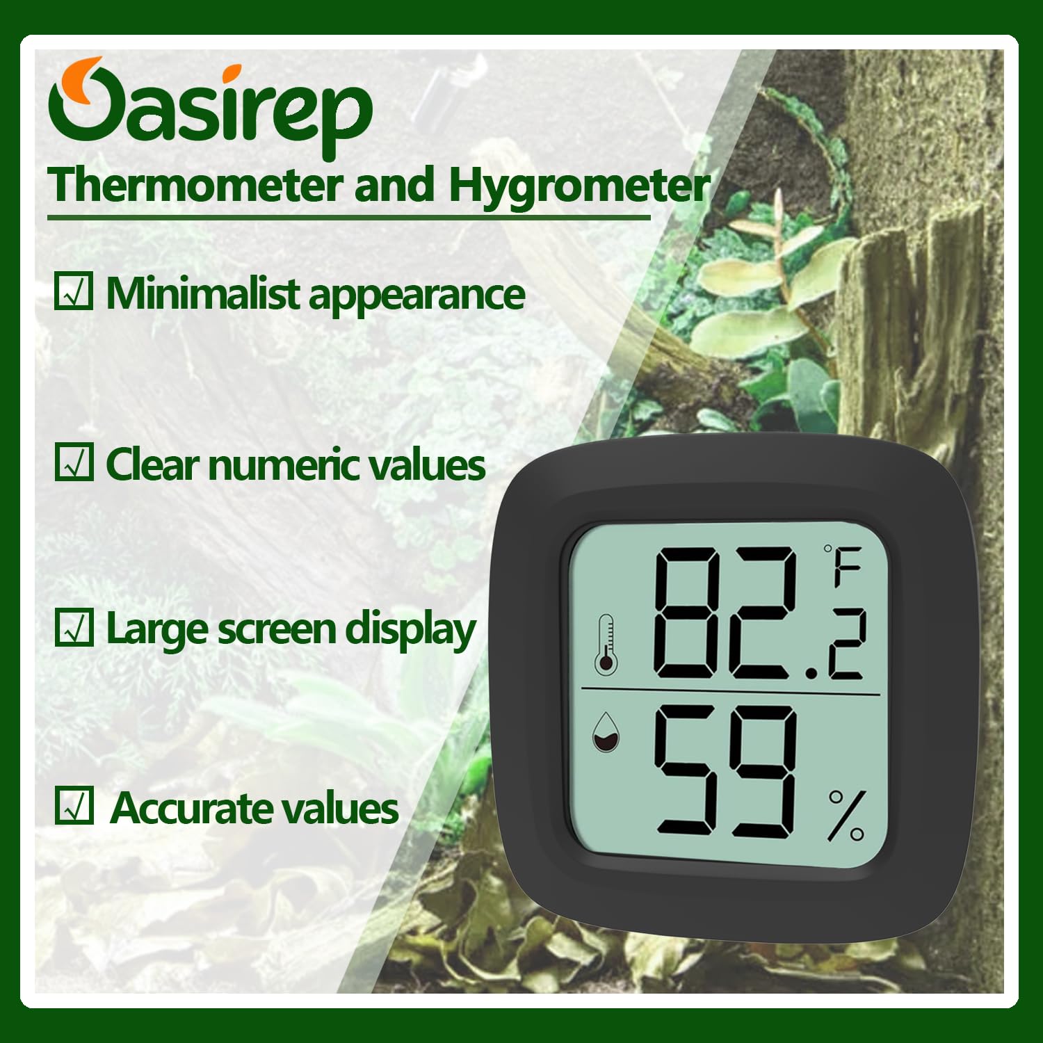 About this item 【Fast & Accurate Environmental Readings】 Equipped with a high-precision sensor, this thermometer and hygrometer provides fast, accurate measurements—±1.8℉/±1℃ for temperature and ±5%RH for humidity. Designed for precise monitoring in reptile tanks. 【Bold LCD Display for Easy Reading】 Features a large, high-contrast LCD screen for quick viewing from across the terrarium. Double-tap to switch between ℉/℃. Ideal for bearded dragon tanks, ball python tubs, tortoise tables, gecko terrariums, and more. 【Compact Design, Seamless Integration】 Discreet black finish blends naturally into any reptile habitat without distracting your pet. A simple yet professional accessory that complements both desert and rainforest setups. 【Reliable Battery Life & Safe Materials】 Runs up to 12 months on a single CR2032 battery (included). Made of durable, eco-friendly ABS resin—non-toxic and safe for daily use in reptile and amphibian environments. 【Easy Setup & Single-Zone Focus】 Includes strong double-sided adhesive for effortless installation on tank walls, hides, or platforms. Perfect for monitoring heat gradient zones or humidity stability in one enclosure. 【Note】 Not waterproof—avoid direct contact with mist, splashes, or water bowls. › See more product details