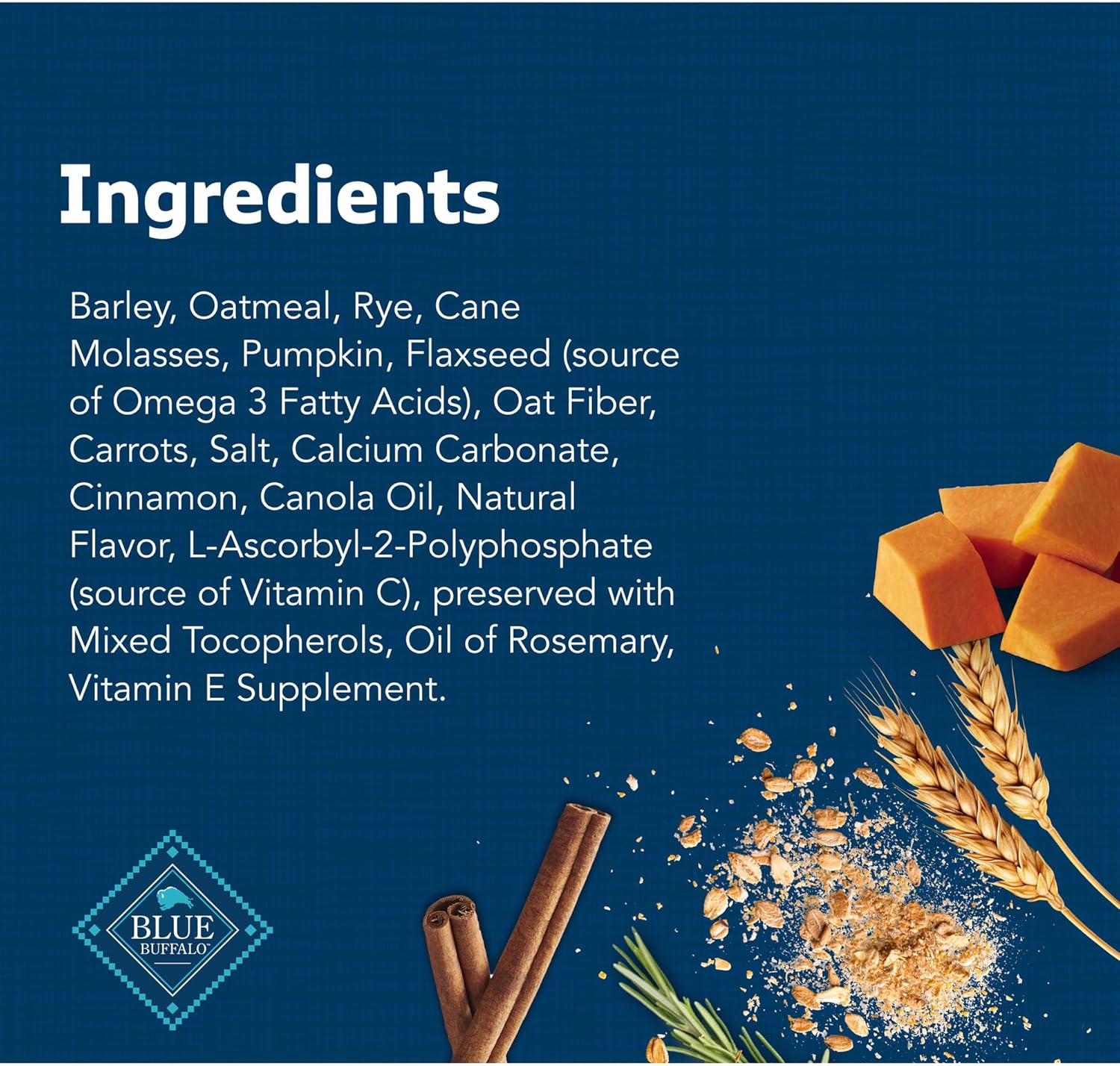 - Included Components: Blue Buffalo Health Bars Natural Crunchy Dog Treats Biscuits, Pumpkin & Cinnamon 16-oz Bag