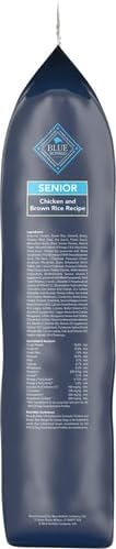 BLUE Life Protection Formula Senior Dry Dog Food is made with the finest natural ingredients –– including real chicken, wholesome whole grains, and healthy fruits and veggies –– to support your dog's health and wellness. BLUE Life Protection Formula for senior dogs also features antioxidant-rich LifeSource Bits to support immune system health. What's more, this senior dog food contains Glucosamine and Chondroitin to help support hip and joint health for overall mobility. Like all Blue Buffalo dog food recipes, BLUE Life Protection Formula contains no chicken (or poultry) by-product meals. This natural dry dog food is also free of corn, wheat, soy, artificial flavors, and preservatives.