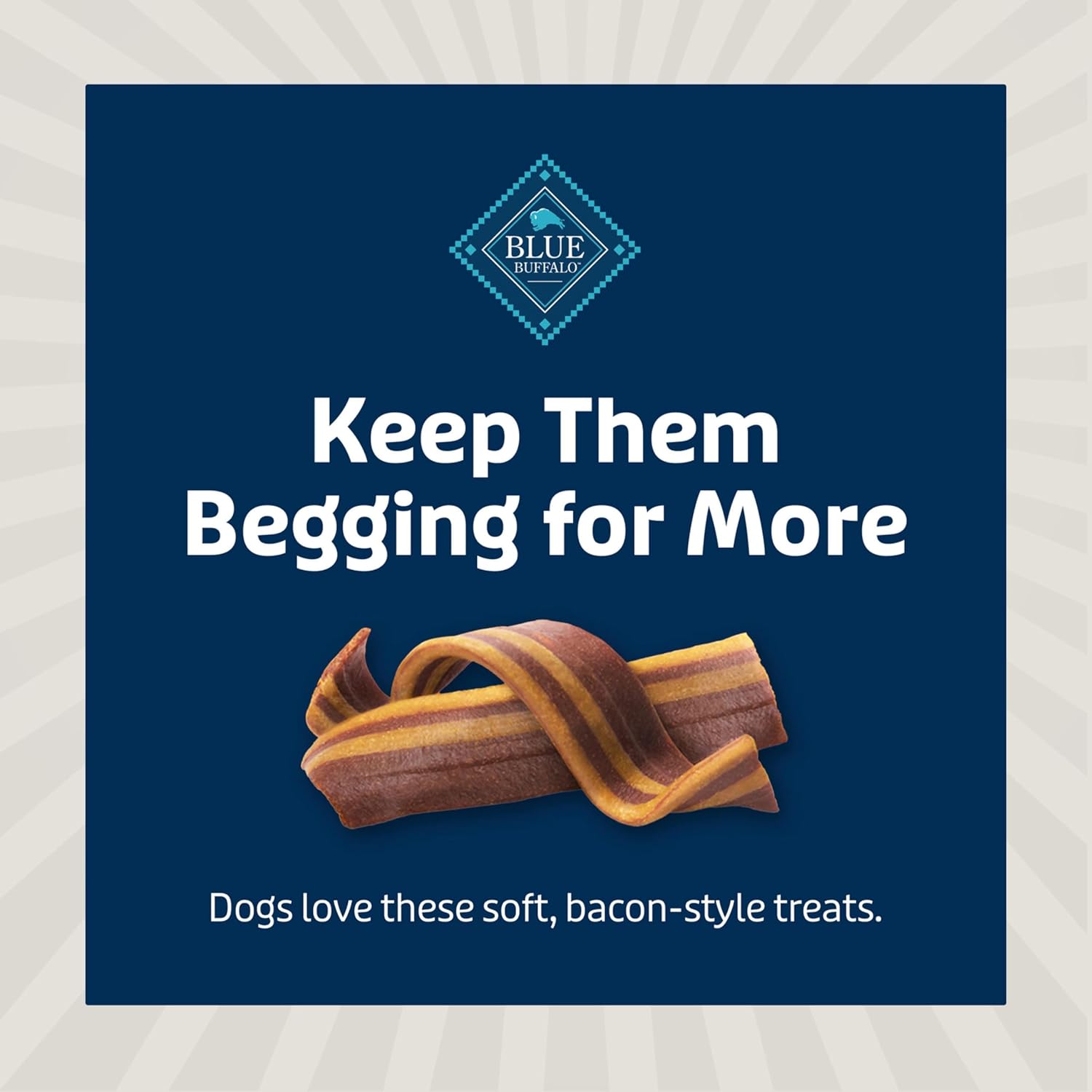 Give your dog the taste of real meat with BLUE Sizzlers Bacon-Style Soft-Moist Dog Treats, Original Flavor. Made with real USA pork as the first ingredient, these tender dog chews look just like real bacon. They're soft and delicious for dogs of all breed sizes and ages. And like all Blue Buffalo dog treats, these treats for dogs don't contain chicken (or poultry) by-product meals, corn, wheat, soy, artificial flavors, or preservatives. Watch your dog's tail wag when you reward them with BLUE Sizzlers Bacon-Style Soft-Moist Dog Treats