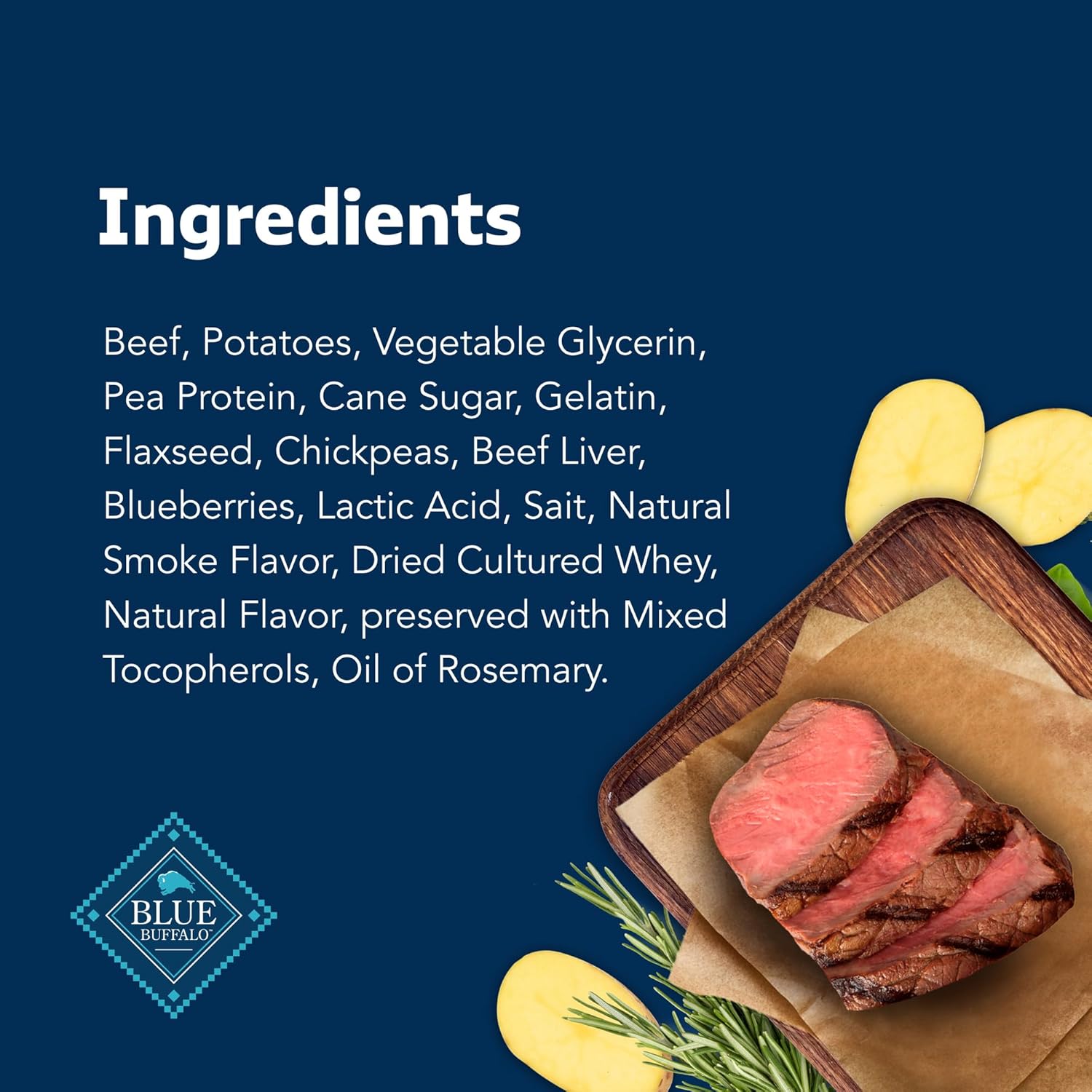 Give your furry best friend the moist and meaty flavor that she craves with Blue Buffalo BLUE Stix Beef Recipe Pepperoni-Style Dog Treats. With real beef as the first ingredient, nutrient-packed flaxseed, oatmeal, and sweet potatoes, and absolutely zero artificial flavors or preservatives, these wholesome dog treats will have your four-legged best friend begging to learn new tricks. Your pup will love eating them, and you’ll love rewarding her for her best doggie behavior with these meaty treats, thanks to the all-natural ingredients and health benefits. And with no poultry by-product meal, corn, wheat, or soy to worry about, these tasty beef sticks make for a perfectly guilt-free way to treat your furry family member.