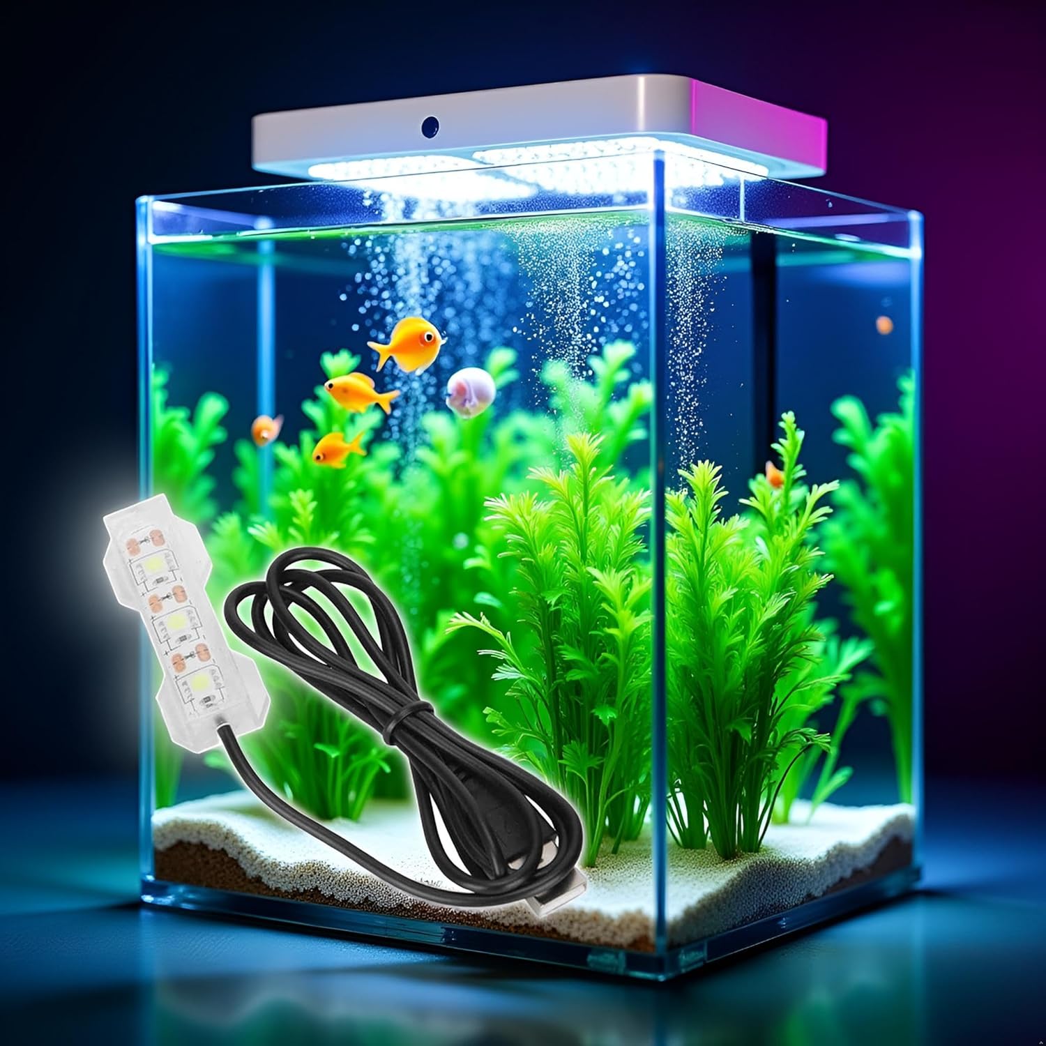 About this item MULTICOLOR LIGHTING: Features vibrant LED lights with multiple color options to create the perfect ambiance for your aquarium environment VERSATILE DESIGN: Compatible with freshwater aquariums, ideal for enhancing plant growth and creating a natural habitat for fish EASY INSTALLATION: Compact and lightweight design allows for simple setup and positioning above your fish tank ENERGY EFFICIENT: LED technology provides bright illumination while consuming minimal power for long-term operation DURABLE CONSTRUCTION: Water-resistant housing protects the light components, ensuring safe operation above your aquarium › See more product details