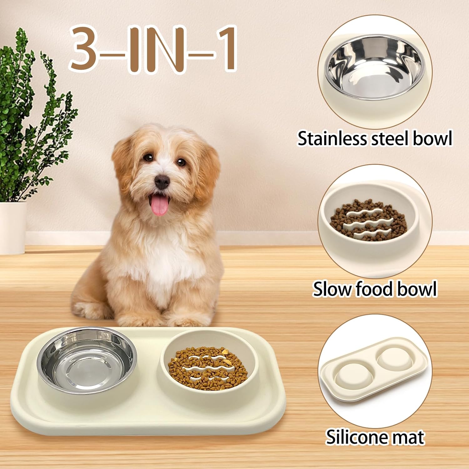 - Included Components: Silicone Slow Feeder Mat, Stainless Steel Bowl