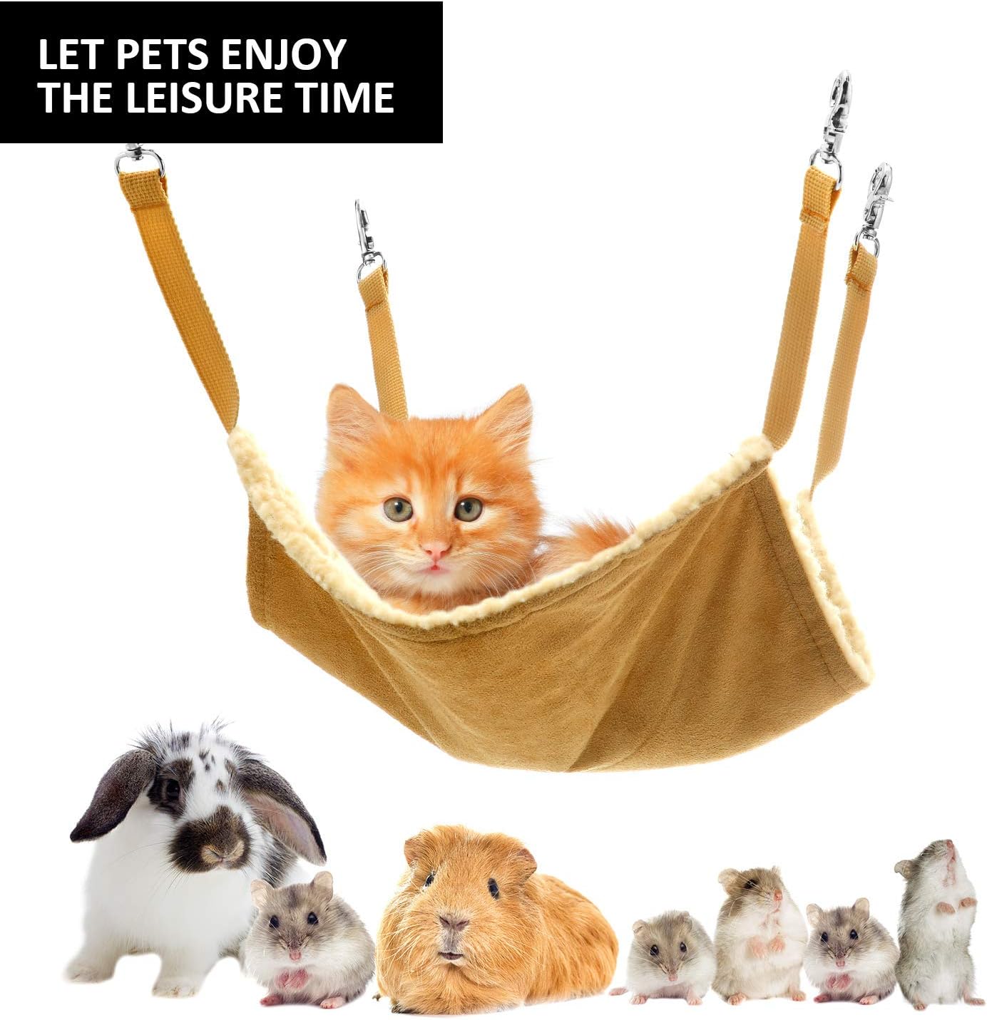 About this item You will receive: 4 pieces of pet cage hammocks in different styles, including leopard print, zebra pattern, black and white dots, solid camel color, 1 piece each style; These attractive patterns will gain the affection of your pets Warm and comfortable: the small animal hanging hammock is made of fleece like fabric with cozy faux lamb wool for warmth and comfort, providing a soft and comfortable place for your lovely pet to relax, play and sleep Suitable for any season: the pet hammock offers two sides for corresponding season, the side made of faux lambswool is for winter and the side made of linen is for summer, letting your pet leisurely lie on top at any time quietly Easy to clean: both machine and hand wash are okay, which makes it convenient to clean; The first time you use the guinea pig hammock bed, you need to wash it for a period of time, and you need to wash it regularly to make your pet feel comfortable and healthy at the same time Wide application: this animal hanging bed is suitable for pet hospital, home and travel use, well fits for bunnies, kitties, hamsters, puppies, ferrets, chinchillas, pet rats and other small animals; Designed in compact size and can be folded into small piece, it is easy to store, remove and assemble and saves much space, a practical gift for your friends to look after their pet › See more product details