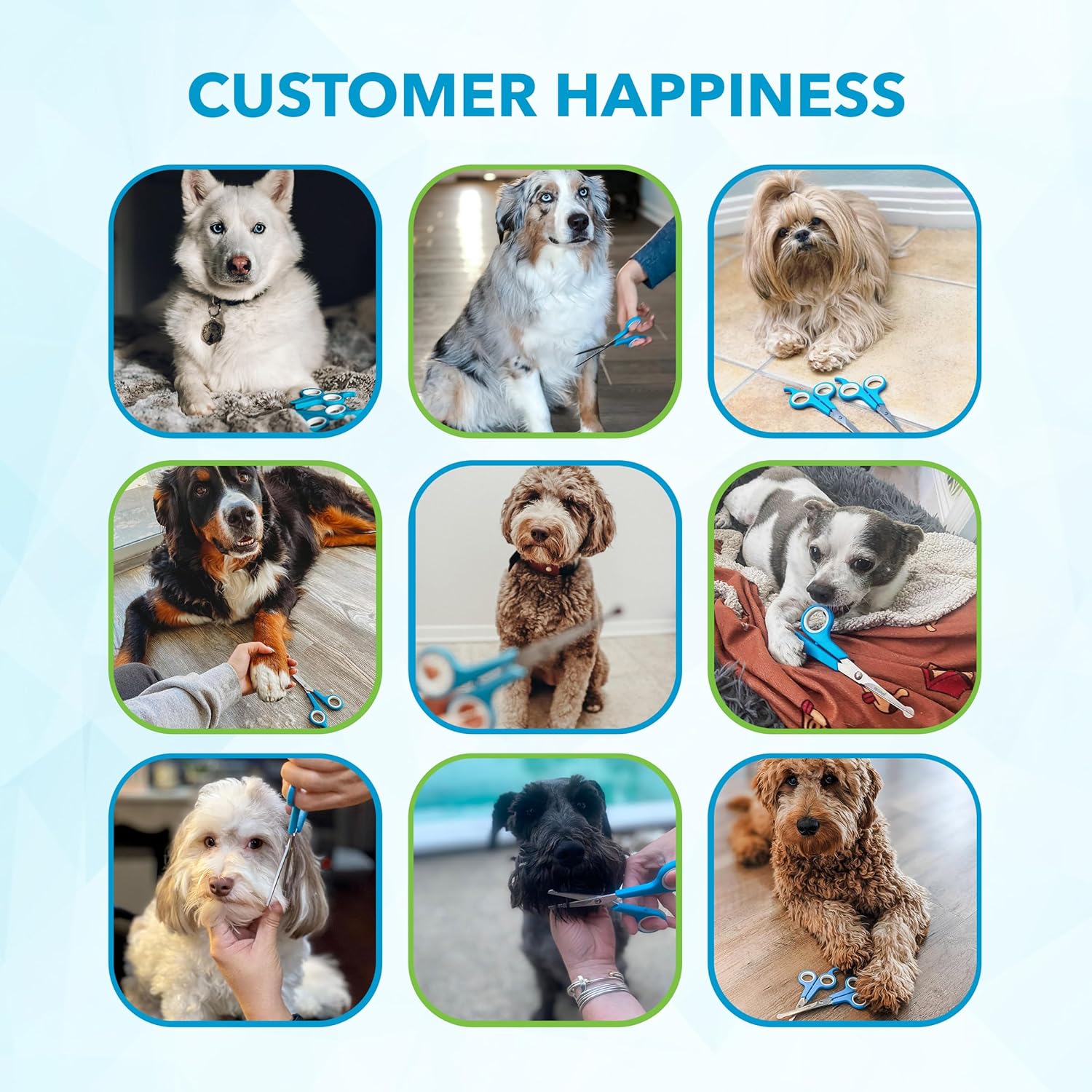 About this item All-in-One Grooming Set: This dog grooming scissors kit includes both smooth and micro-serrated blades for precise trimming of body, face, and paws. Ideal for dogs and cats, these pet grooming scissors make at-home grooming effortless. Safe Rounded Tips: Designed with rounded ends, these cat grooming scissors prevent accidental cuts while grooming delicate areas like ears and paws. Perfect for a gentle, worry-free experience using pet grooming scissors for any pet type. Ergonomic Comfort Grip: Crafted with cushioned, anti-slip handles and a finger rest, these grooming shears for dogs professional reduce hand strain. They ensure superior control and comfort for both beginners and expert pet groomers. Sharp Stainless Steel Blades: Built with durable stainless steel, these dog grooming scissors deliver clean, precise cuts without snagging. Ideal for all coat types, they make each grooming session smoother and more efficient. Durable & Reliable Design: The upgraded screw system in these sheep shears for dogs keeps blades aligned for lasting sharpness. Boshel’s dog grooming scissors set ensures consistent performance and long-term reliability. › See more product details