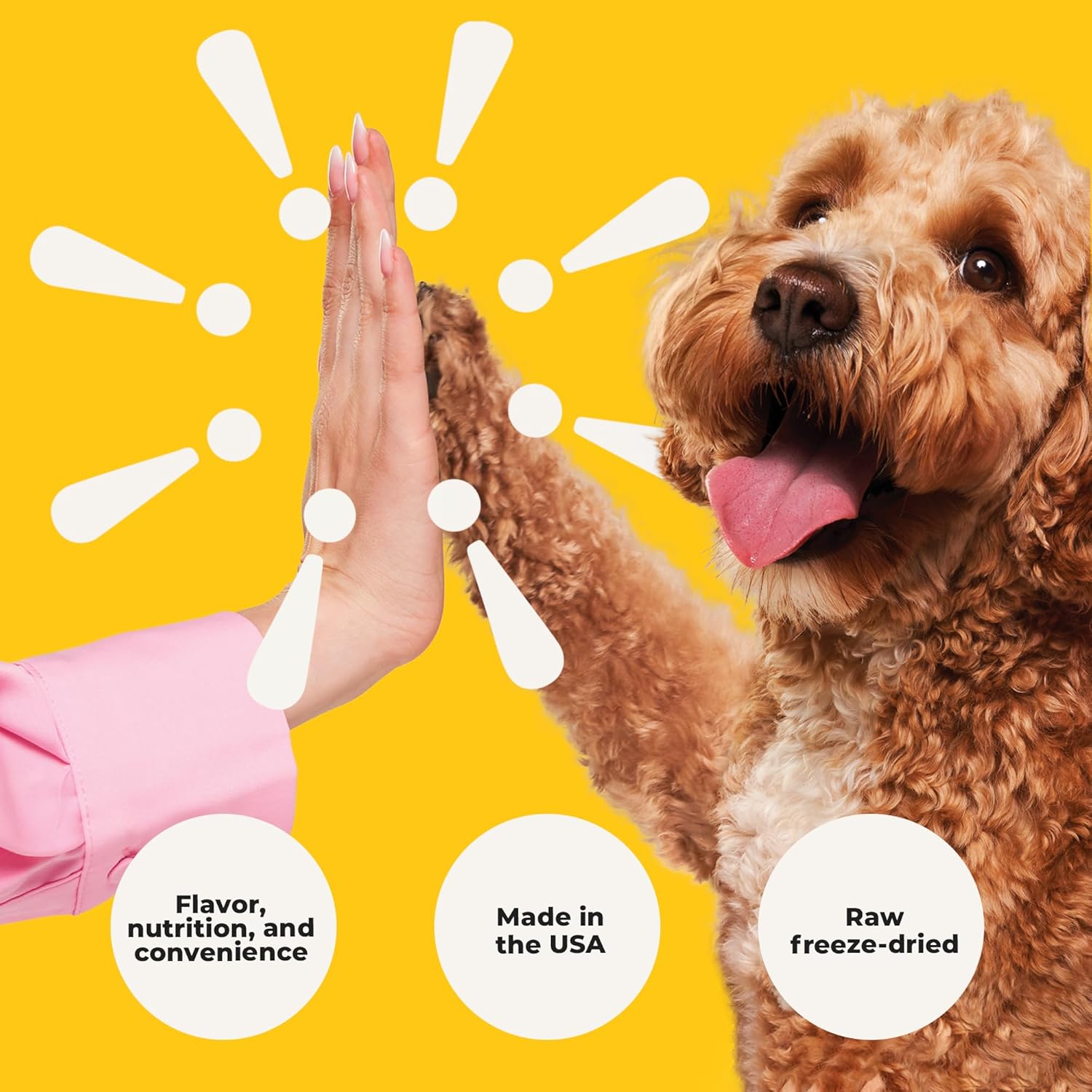About this item RAW, REAL, RIDICULOUSLY TASTY - Heckova! Bow Wow Beef Freeze-Dried Raw Dog Food delivers complete and balanced nutrition for adult and senior dogs of all breeds and sizes. Made with real raw beef and beef organ meat, it's a wholesome meal dogs crave and pet parents can trust. PACKED WITH PROTEIN - With 21 grams of protein per cup, it starts with real raw beef, then we add vitamin-rich sweet potatoes, spinach, green beans, cranberries, and whole-grain brown rice to support healthy digestion. TOTAL NUTRITION, TOTALLY DELICIOUS - Packed with essential vitamins and minerals, this complete meal supports canine heart, joint, immune, digestive, skin, gut, and coat health. It’s a freeze-dried meal dogs love—and even picky eaters can’t resist. PERFECT MEAL OR TOPPER - Serve as a complete and balanced meal or as a high-value training reward, mixer or kibble topper in addition to your pet’s current food. If your dog prefers a wetter food, simply stir in a small amount of water to rehydrate. PREMIUM QUALITY, MADE IN THE USA - Developed by canine nutritionists and vet-reviewed, each batch is responsibly sourced and crafted to meet strict quality standards. No artificial preservatives, flavors, or colors—just a heck of a lot of wholesome goodness for your best friend. › See more product details