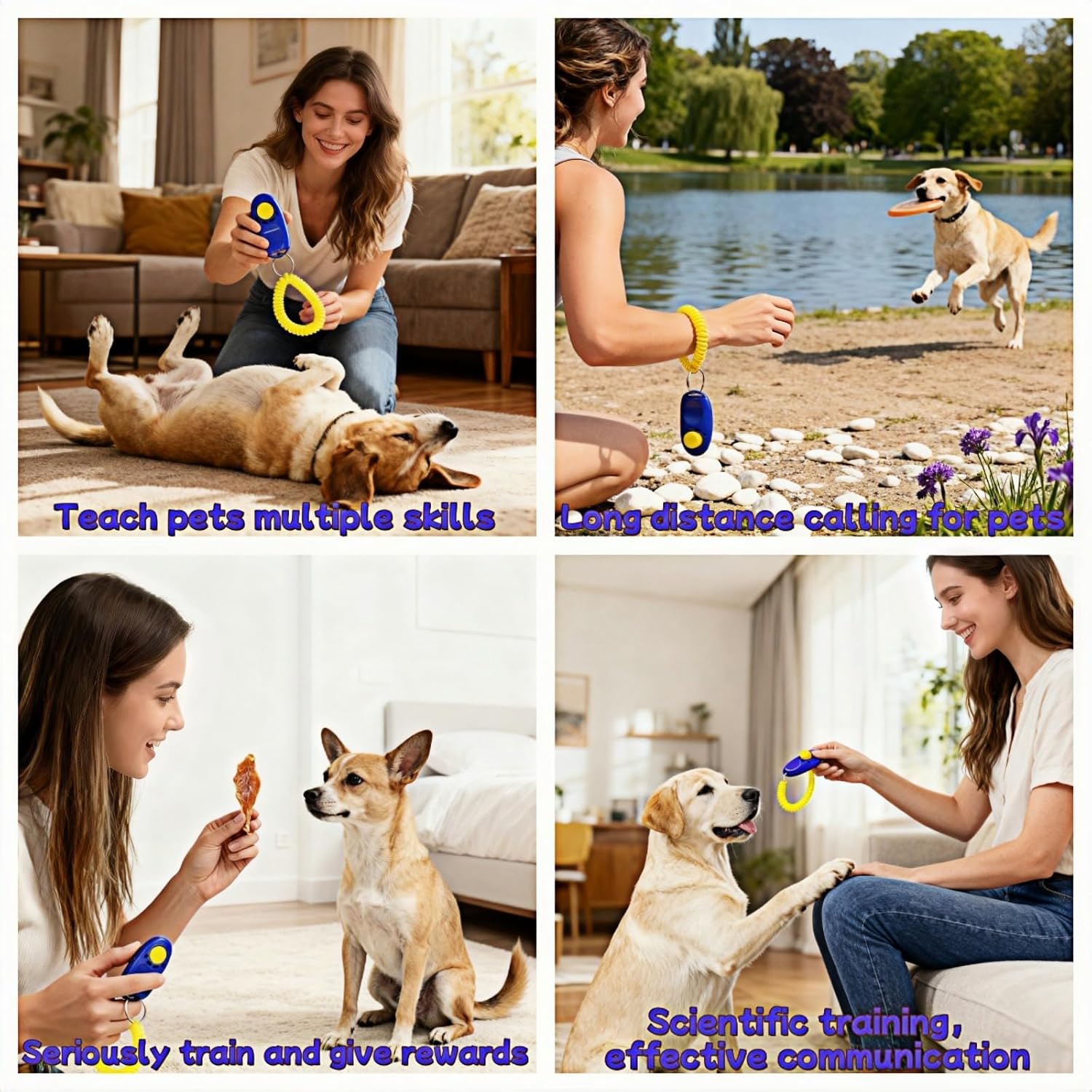 Transform your dog training experience with this professional-grade clicker training tool. The ergonomic design features a secure, elastic wrist strap that prevents dropping during active training sessions, while the smooth, rounded edges ensure comfortable handling. The large, responsive button is specifically sized for easy pressing, delivering a clear, consistent clicking sound that effectively marks desired behaviors. Perfect for teaching basic commands like sit, stay, and shake, this clicker creates a positive reinforcement bridge between actions and rewards. The compact design fits naturally in your palm and makes it ideal for training sessions anywhere. Suitable for puppies as young as 2 months old, this training tool helps establish good behaviors early. Each clicker comes with a practical training guide that walks you through fundamental commands and potty training techniques. The durable construction and thoughtful design make this an essential tool for developing a well-behaved, responsive pet through positive reinforcement methods.