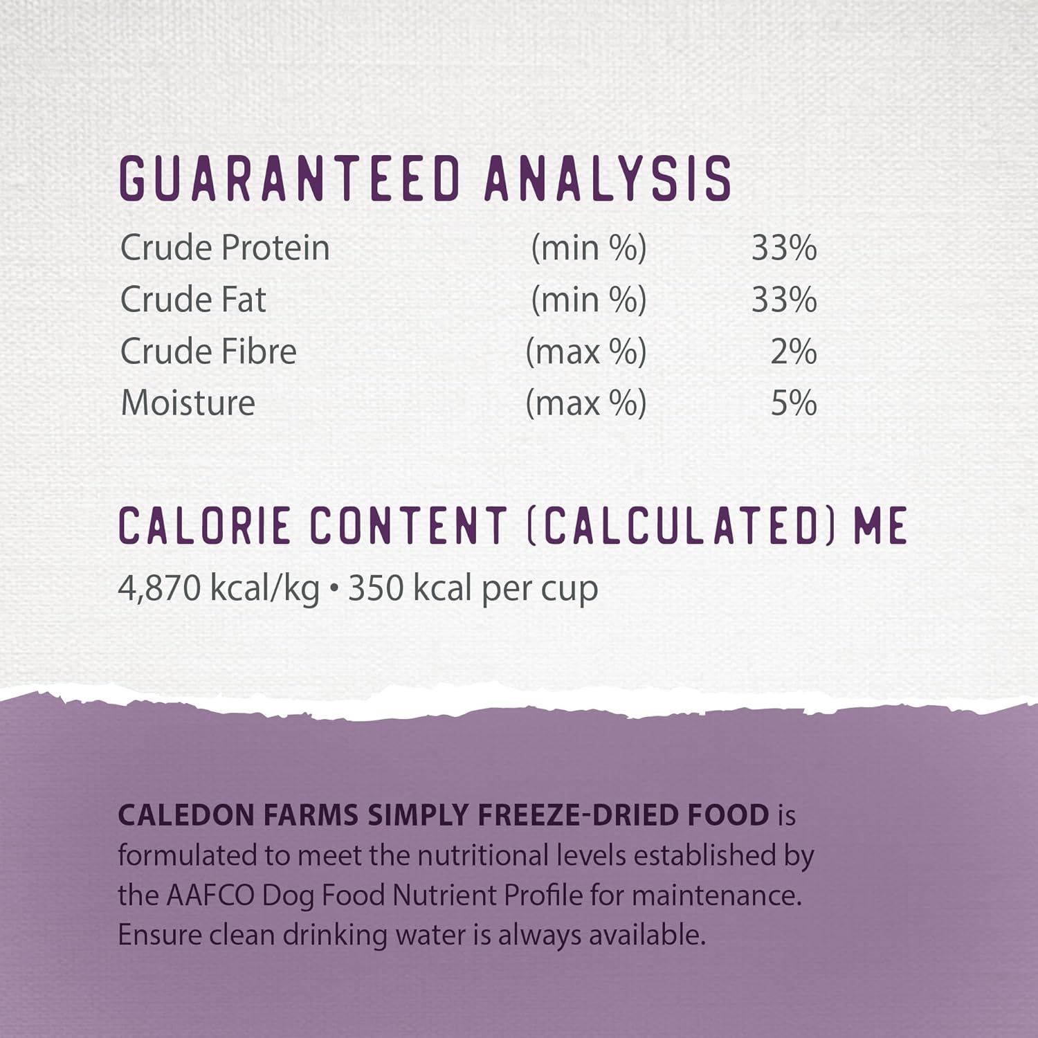 This recipe marries the nutritional benefits and irresistible taste of raw with the convenience of kibble – no refrigeration or special handling required. Freeze dried to preserve the nutritional integrity, flavour, texture, and aroma of each ingredient, this blend is sure to entice even the pickiest of eaters. Made with 96% beef, organs, and bones, this recipe is packed with high-quality protein and nutrients. Feed as a meal or a topper to provide your pet with a healthy and digestible meal.