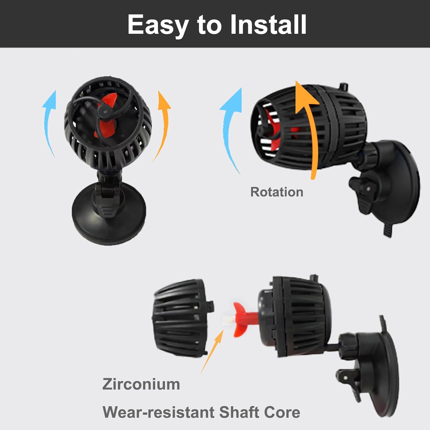 About this item 【Adjustable Flow Rate】4 levels of power adjustment, allowing you to adjust the input power as needed to save power. 【Feeding Mode】Press and hold the power button for 5 seconds to enter the feeding mode. The wave maker will stop working for 10 minutes to facilitate the fish's feeding. 【For 10~60Gal fish tank】10W 12V/1A 1500Gph Strong and Quiet 30dB.The length of the fish tank is no more than 35 inches. 【Easy to install】Strong suction cup, firmly installed. Please install it in the water. 【Ceramic Impeller】The manufacturing material is Zirconia.Widely uses in dental filling materials,with strong wear resistance and corrosion resistance.Our wave maker has a lower failure rate and longer service life. › See more product details