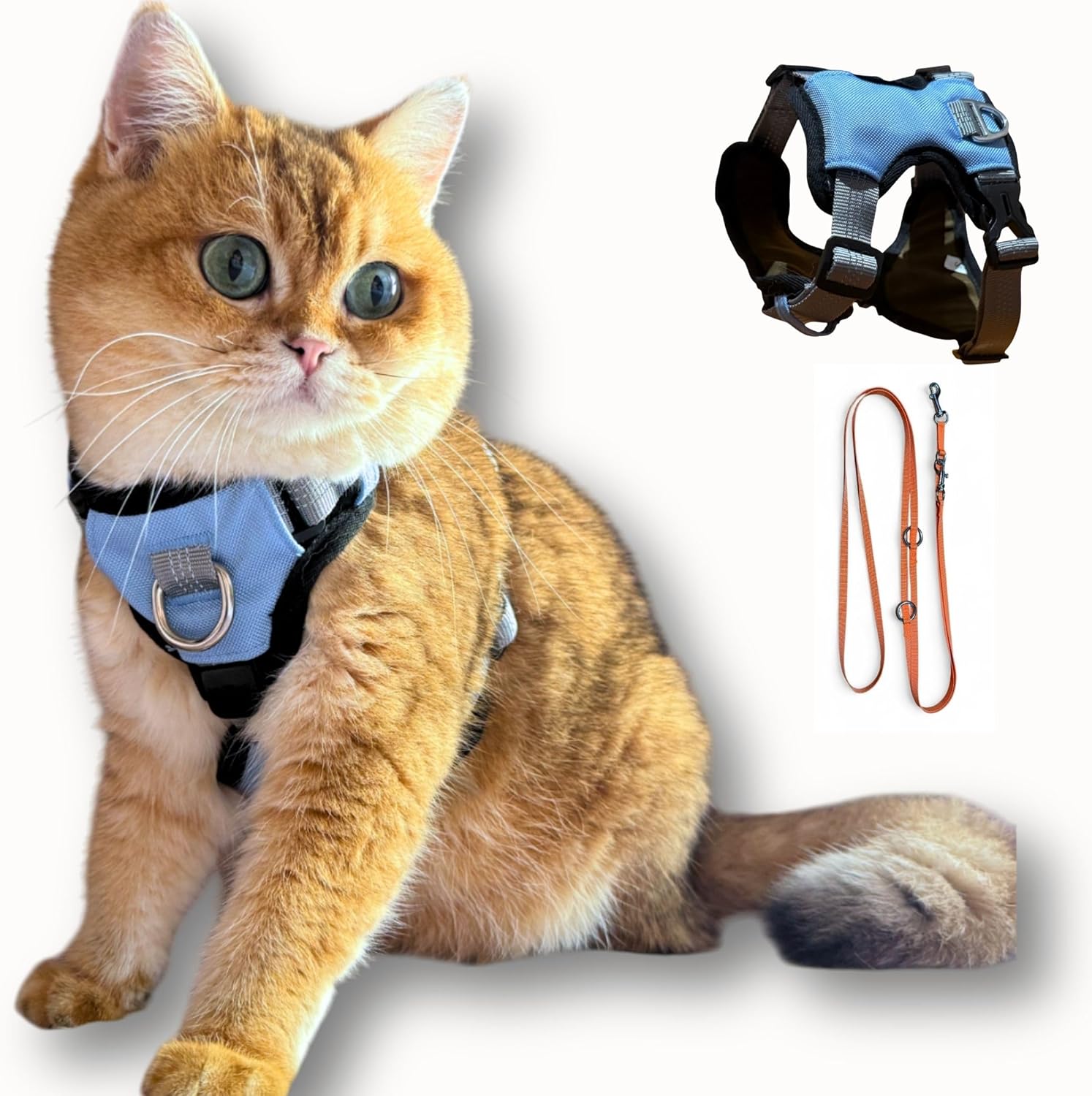 Give your feline friend both safety and style with this premium cat harness and leash set. The innovative 5-point adjustable design ensures a secure, comfortable fit for adult cats of various sizes. The vest-style harness features soft, durable material that's gentle on your cat's fur while providing reliable restraint during outdoor adventures. Thoughtfully designed with reflective lines for enhanced visibility during evening walks, this navy blue harness set includes a matching leash for complete control. The sturdy construction includes reliable buckles and D-rings for attachment points, making it perfect for supervised outdoor activities, vet visits, or training your indoor cat to explore safely. The adjustable straps allow for a custom fit around your cat's body, preventing escape while maintaining comfort. Whether you're introducing your cat to outdoor walks or need a secure solution for travel, this harness set offers both functionality and comfort for your beloved pet.