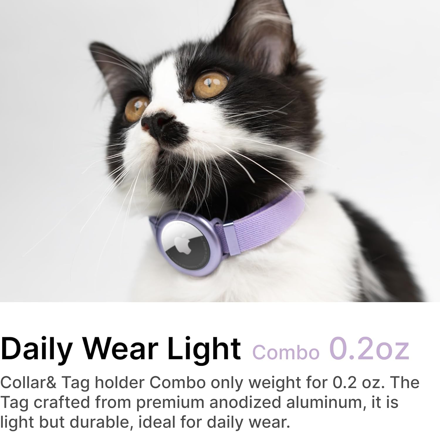 About this item 【Awarding Design, Elastic and Safe】Our original designed cat collar features 1.8 times elasticity, which won a Gold Prize in International Design Awards. This ensures your cat can safely escape in emergencies without injury or choking. Note, it prevents cats from choking or injuring even though it is NOT a breakaway collar. 【Design for Pet】This AirTag holder is compatible with collars up to 0.4/0.6 inch (Size S/ Size M). The collar is for all cats with an adjustable length of 6 - 12 inches (Size S), 7.9 - 15.7 inches (Size M). 【Secure Fit for Apple AirTag】Designed to complement the AirTag's aesthetics and functionality without compromising on style, it ensures clarity of sound for tracking and boasts a sleek appearance. Note: Airtag is NOT included. 【Lightweight Comfort】Weighing just 0.14 oz/0.26 oz, airtag cat collar offers cloud-like comfort without causing neck strain. It is adjustable and scratch-resistant. 【Superior Materials】Made with premium polyester and hypoallergenic anodized aluminum alloy fasteners, cat airtag collar airtag is lightweight and gentle on your pet's fur and skin, ideal for daily, long-term wear. › See more product details
