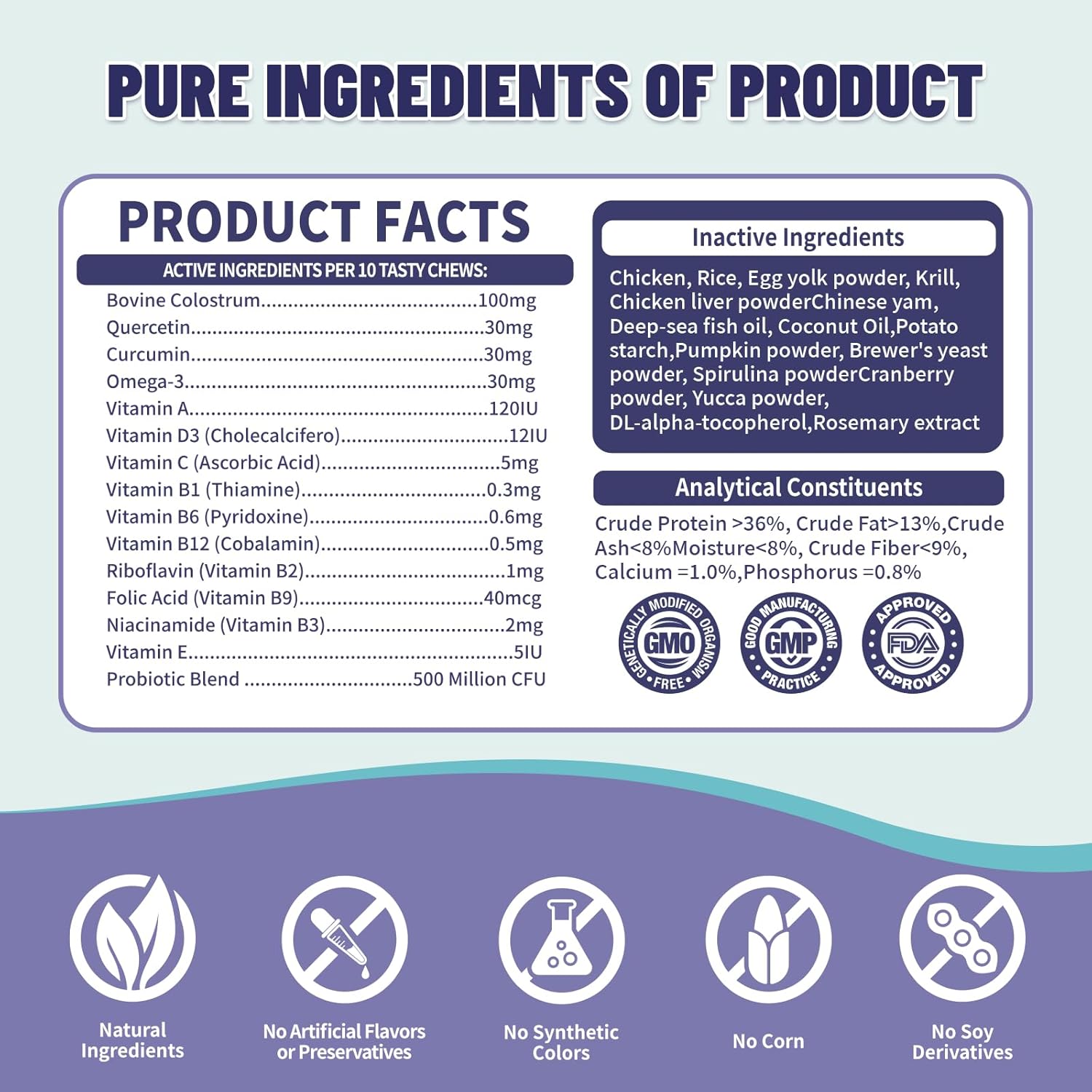 - Active Ingredients: Bovine Colostrum, Quercetin, Turmeric, Probiotic Blend