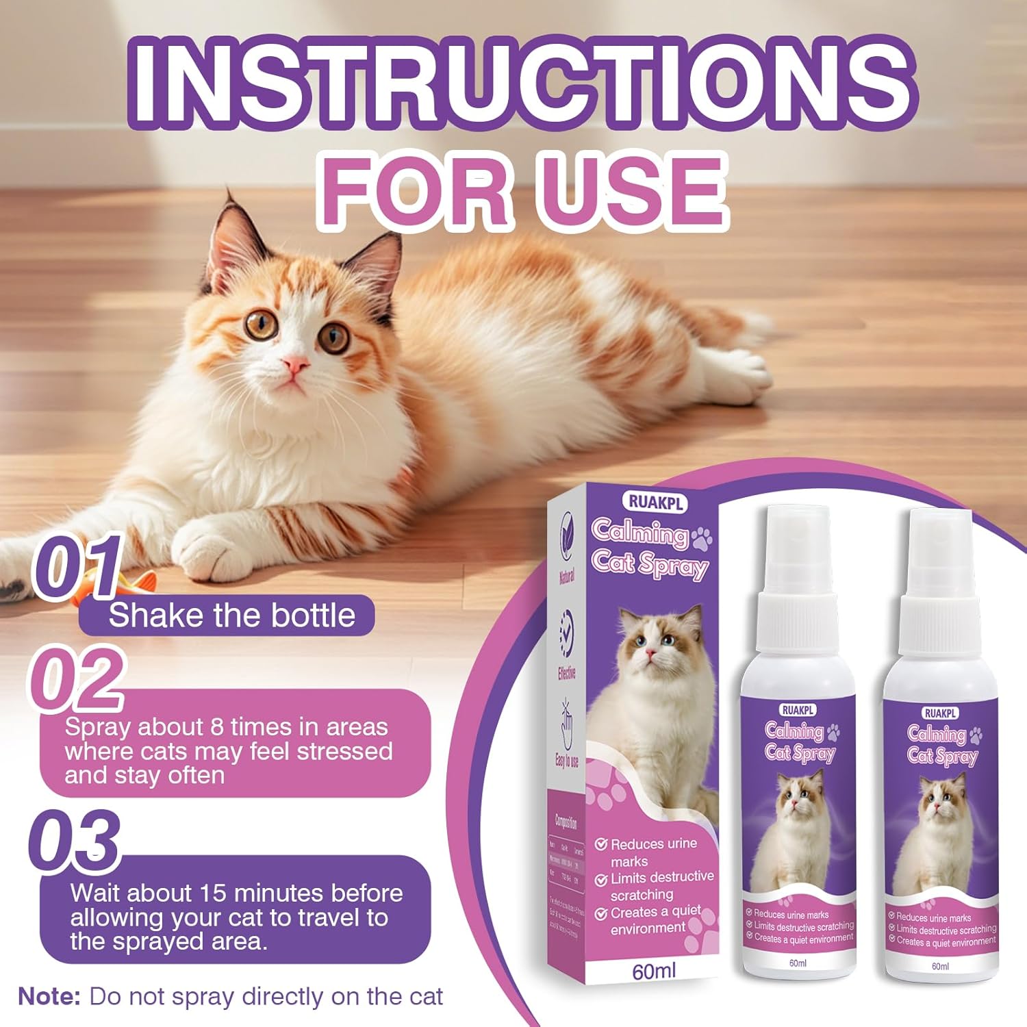 Relief anxiety and calming: Cat calming pheromone spray creates a more comfortable and reassuring living environment for your beloved pet, whether it's during travel, foster care, or hospital visits, cat calming spray for indoor cats allows them to remain calm and relaxed in the face of a variety of stressors Safeingredients: This pheromone spray to calm cats, carefully formulated with safe ingredients, is suitable for anxious pets. pheromones for cats spray contains no artificial additives. Cat calm spray this safe formula is not only effective in helping your pet to stay calm in stressful situations, but more importantly, this pheromone spray for cats calming works quickly without causing any long term side effects for your pet Cat calming spray for travel is very easy to use: Simply spray calming cat spray 8 times lightly on the surface to be treated. If you are transporting a cat, it is recommended that you spray the kennel with calming spray within 15 minutes before departure. Feline calming spray this will make your cat feel safe and comfortable. Additionally, you can apply pheromone spray for cats to your cat's bed, cage, room or car interior, which is very convenient both at home and when traveling Correct bad behavior: Not only does this therapet cat calming spray help relieve your pet's stress and anxiety.Cat calming is also great for correcting bad behavior in cats, pheromones for cats works dramatically on most cats, cat spray reduces unwanted behaviors such as fighting, scratching and pee marking. Our calm cat diffuser mimics the pheromones that cats naturally secrete, thus making your cat feel relaxed and at ease Protect furniture: This cat sedatives for travel is perfect for spot treating targeted areas of your home for cats, such as couches or door frames. Spray cat relaxer for anxiety on the cat's suitcase, cat's bedding or blankets and litter box. Cat pheromones inhibits the urge to scratch furniture and carpets, thus reducing damage to furniture and carpets › See more product details