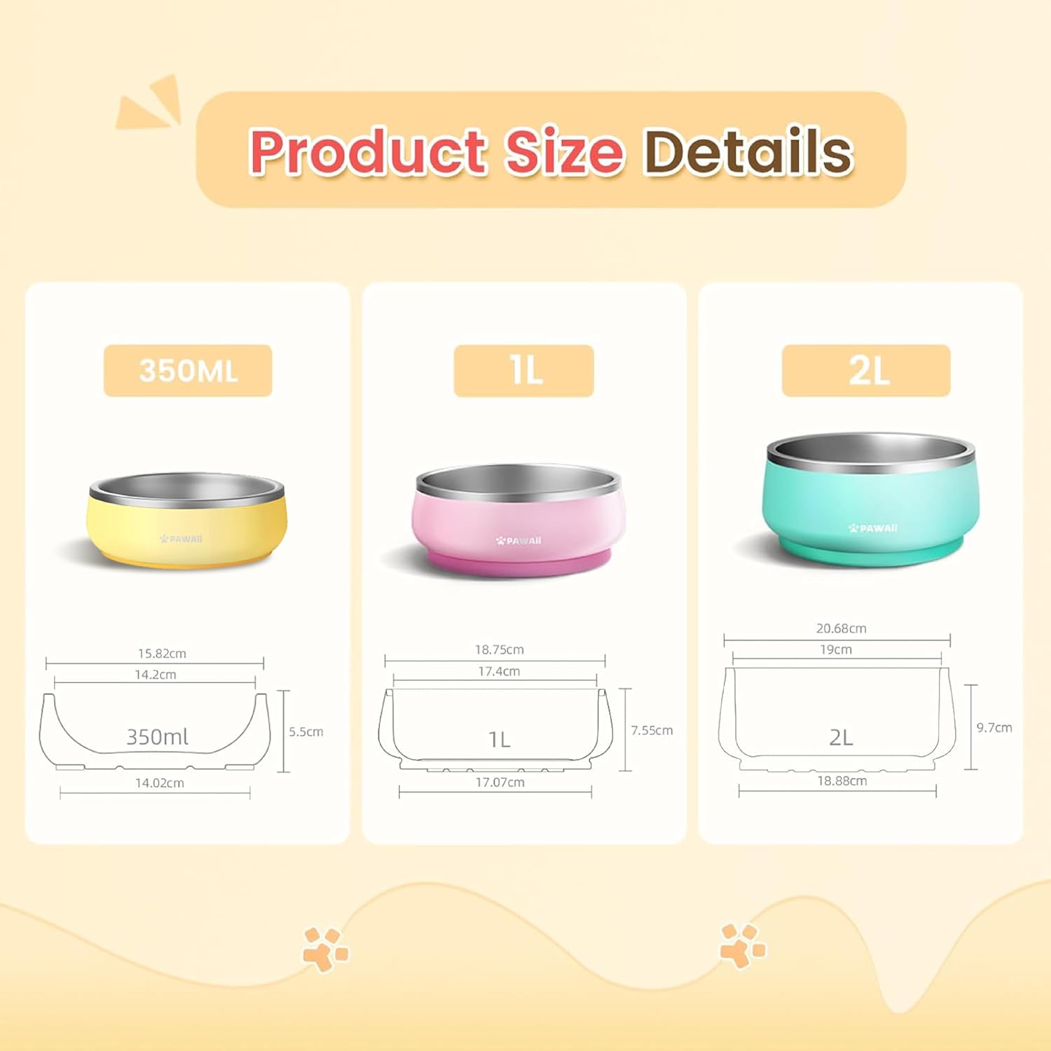 • 𝐒𝐚𝐟𝐞 𝐭𝐨 𝐮𝐬𝐞 Upgraded 12 oz. (350 ml) Stainless Steel Pet Bowl, small and space-saving, designed for small dogs, puppies and kittens 𝐋𝐞𝐬𝐬 𝐭𝐡𝐚𝐧 𝟏𝟏 𝐥𝐛. , Cheese yellow new color available, Made from double wall 304 stainless steel, this pet bowl is crash and bite-resistant. The adoption of food-grade materials also makes it safe to use.
