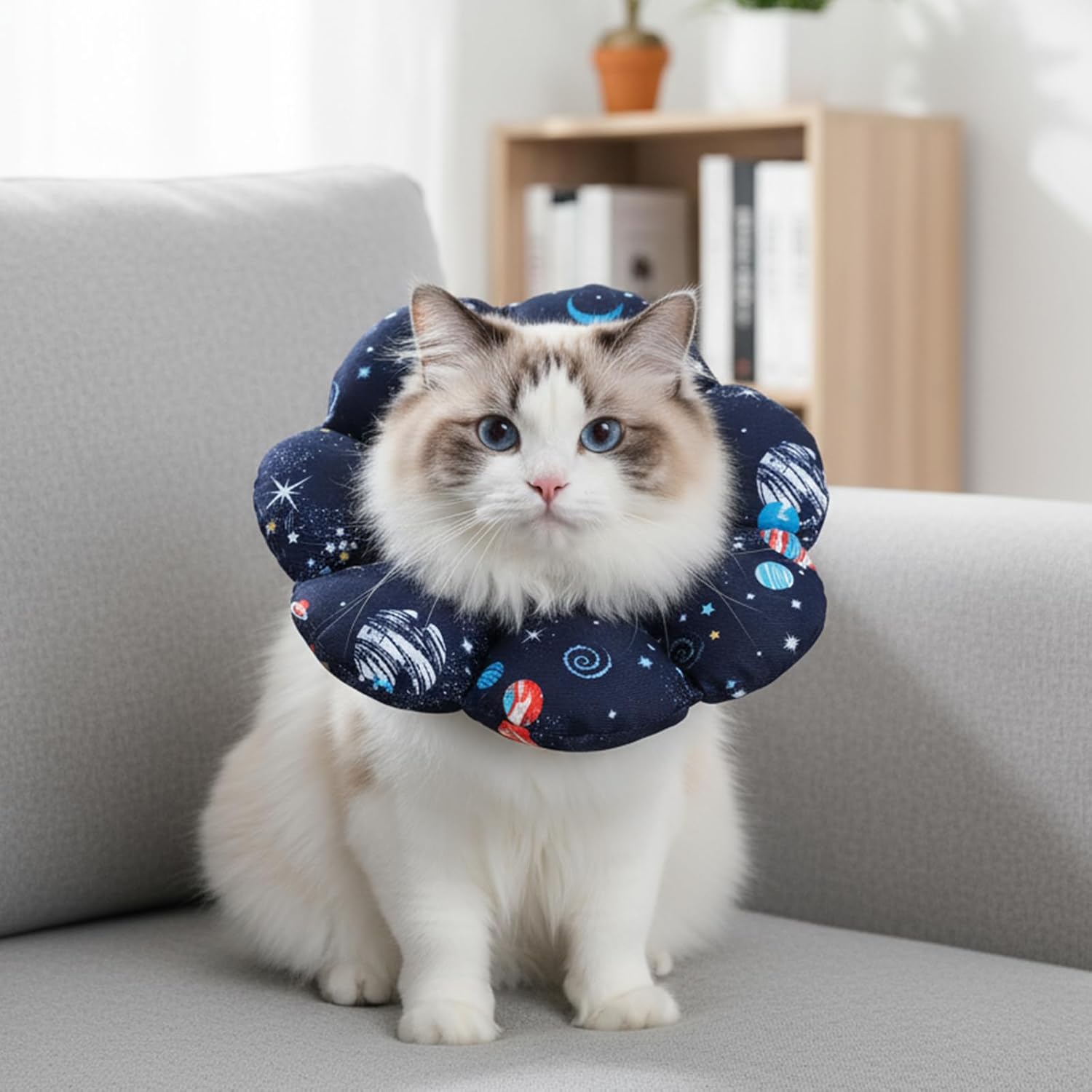 YBEATY Cat Cone Collar Soft Waterproof Cat Recovery CollarProtective Adjustable Cat Cones to Stop Licking After Surgery Cute Pet Pillow for Small Animal Cats Kittens PuppiesSpecifications:Category: Pet CollarColor: BlueMaterial: Composite Waterproof Fabric + Space CottonFunction: Prevents pets from licking wounds and stitches after surgeryDimensions: 9.06 × 9.06 × 1.49 inches / 23 × 23 × 3.8 cmPackaging: 1 pc × Pet Collar1. The donut for cats after surgery features a cuddly design that doesn't obstruct your cat's vision.2. Cat neck cone brings joy to your pet during their recovery, ensuring they stay comfortable, happy, active, and unrestricted3. This cat soft cone collar also doubles as a fun pet accessory, perfect for Christmas, holidays, or parties