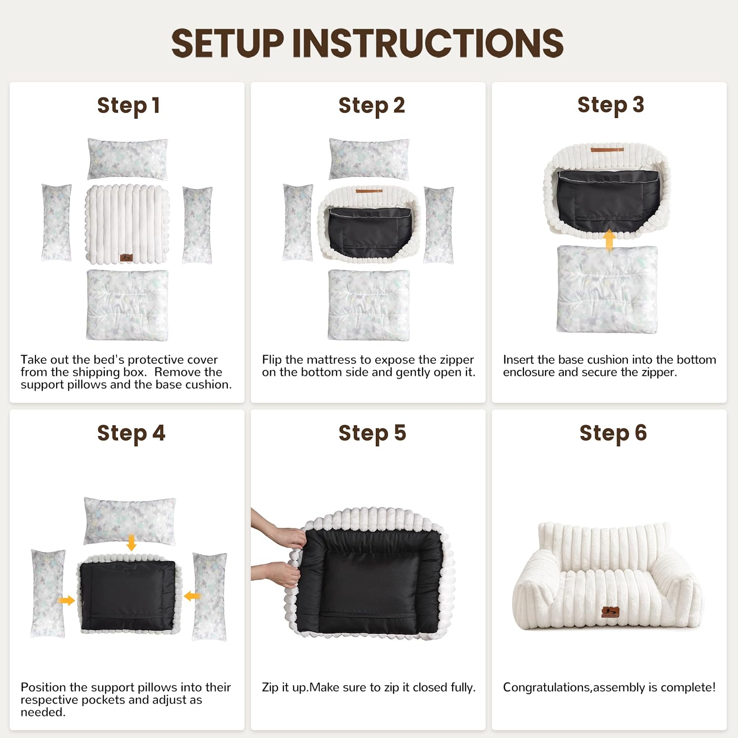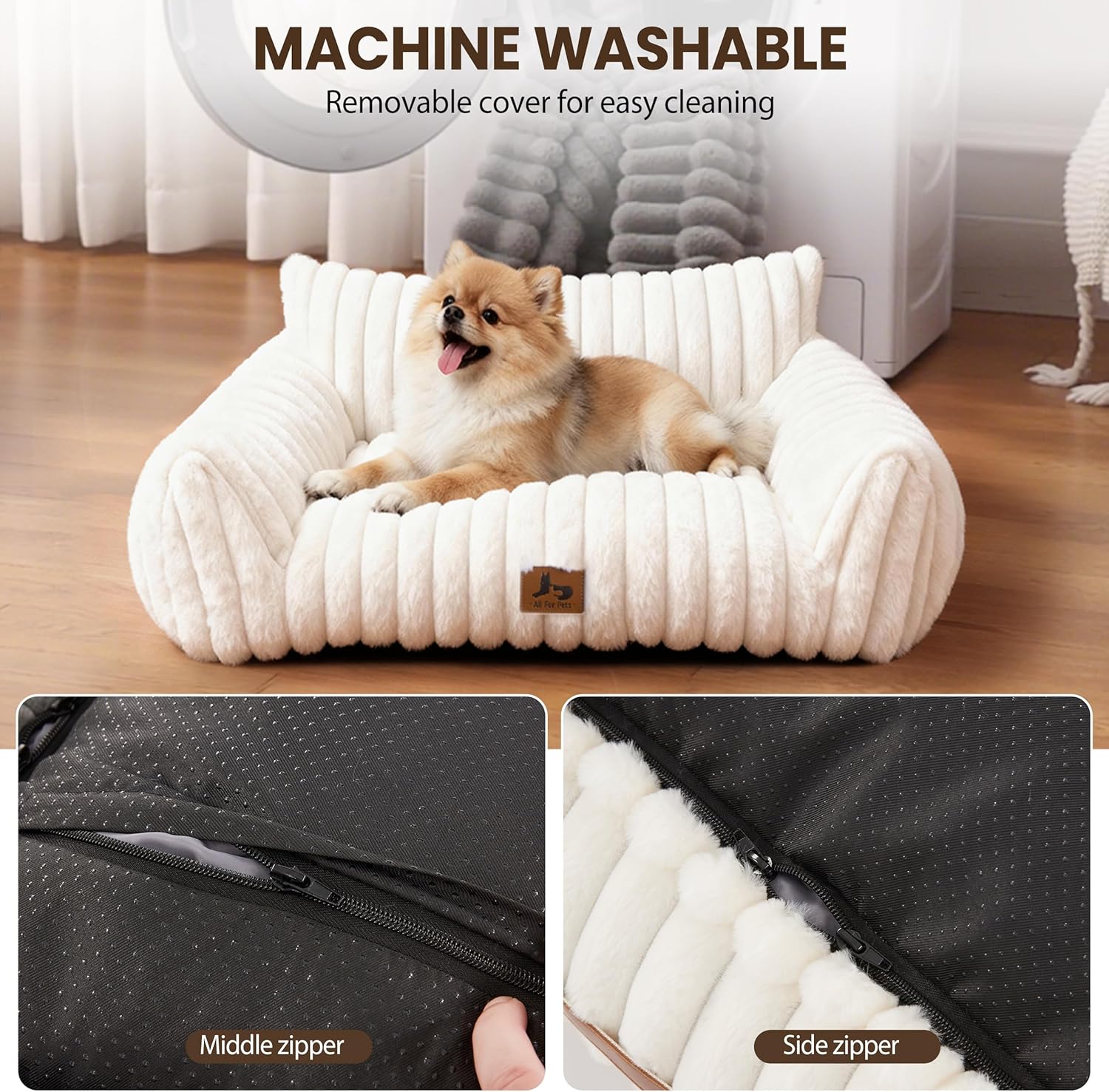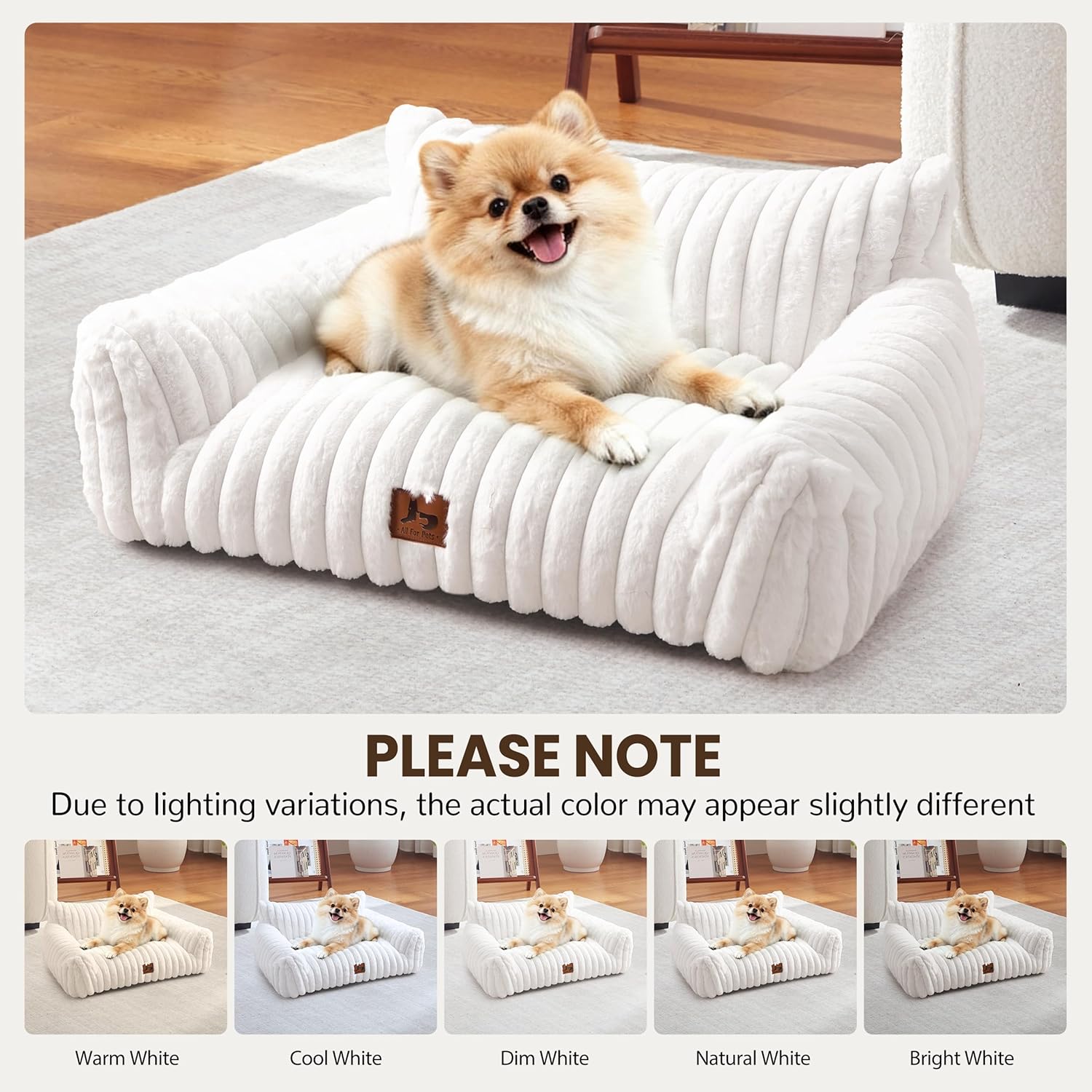 About this item : The WARMREST cat couch or dog couch features a 3-sided high-back bolster that offers secure head and neck support—perfect for small dogs, indoor cats, and pets that love curling up or stretching out. : Made with plush faux rabbit fur, this cute cat bed offers warm, all-season comfort. The soft curved shape fits your pet’s body naturally, making this dog sofa ideal for cozy indoor relaxation. : The pet sofa uses a scientific blend of shredded foam, PP cotton, or memory foam to create a small dog bed that stays fluffy, supportive, and comfortable without clumping. : Designed with a non-slip bottom, this small dog & cat couch stays stable on smooth floors. Its modern aesthetic complements any space, making it a functional and stylish dog couch or cat sofa for small rooms. : Features a removable, machine-washable cover for stress-free cleaning. The dog bed ships vacuum-packed—simply shake, fluff, and let the pet sofa rest for 24 hours to fully expand. › See more product details