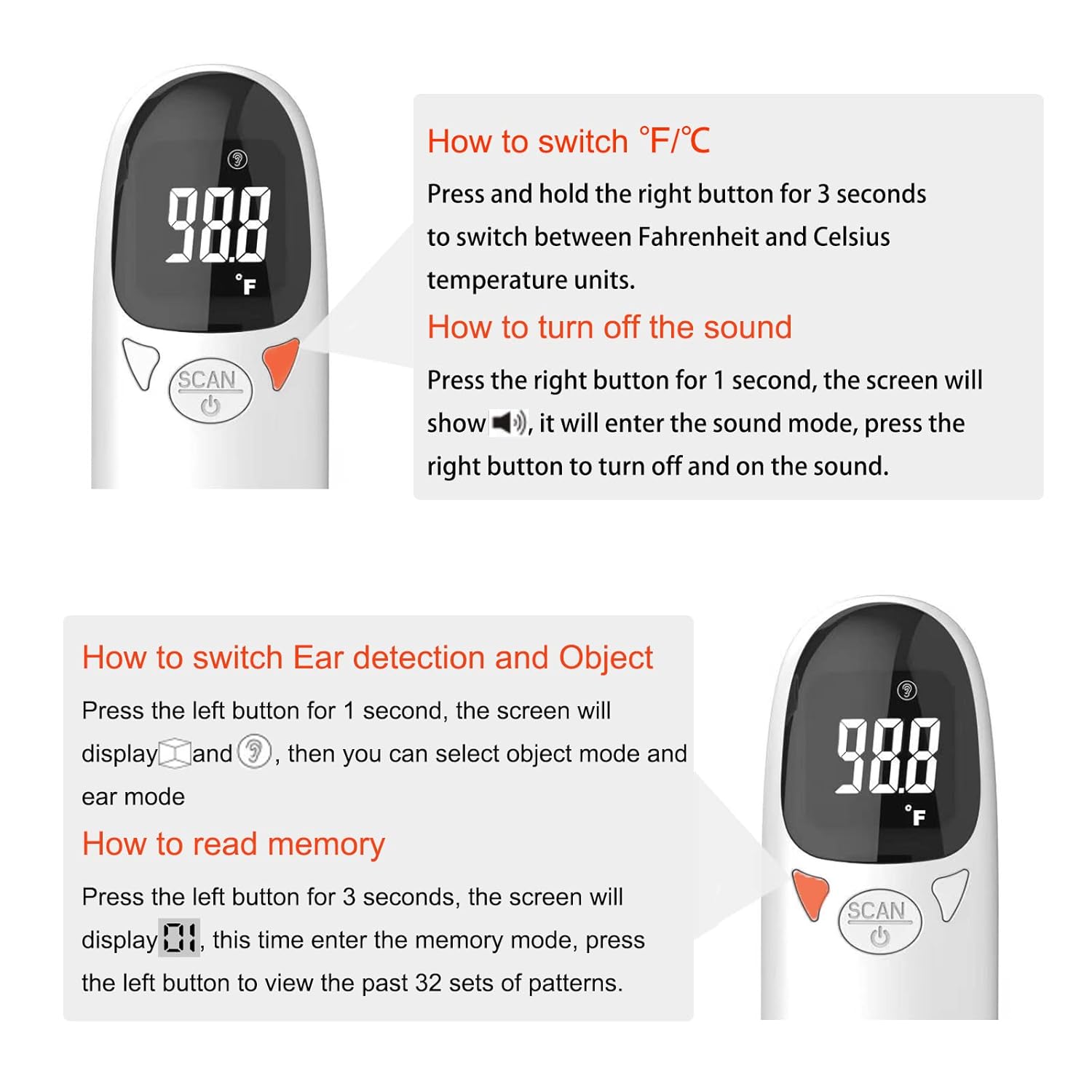 About this item Non-Contact Infrared Ear Thermometer for Pets – Safely measure your pet’s body temperature without physical contact, minimizing stress for your furry friend and eliminating cross-infection risks or unpleasant odors common with rectal thermometers. Fast, accurate, and gentle—perfect for routine health monitoring. Dual Temperature Modes with 3-Second Switch – Effortlessly toggle between ℃/℉ using a 3-second hold (ear mode for pet body temp; object mode for checking food/water temperature). Ensure your pet stays healthy with precise body temp tracking and serves meals at their ideal temperature. Eco-Friendly Battery Design – Upgraded construction reduces battery waste, saving you money and minimizing environmental impact. Enjoy long-lasting use without frequent battery replacements. Pet-Specific Precision, Not for Humans – Engineered exclusively for pets to provide reliable readings tailored to their physiology. Note: Not recommended for human use (may show inconsistent results). Smart Features for Hassle-Free Care – Stay informed with an intelligent over-temperature alarm, 32 memory sets to track trends, adjustable sound control, and a large LED display for clear, easy reading. › See more product details