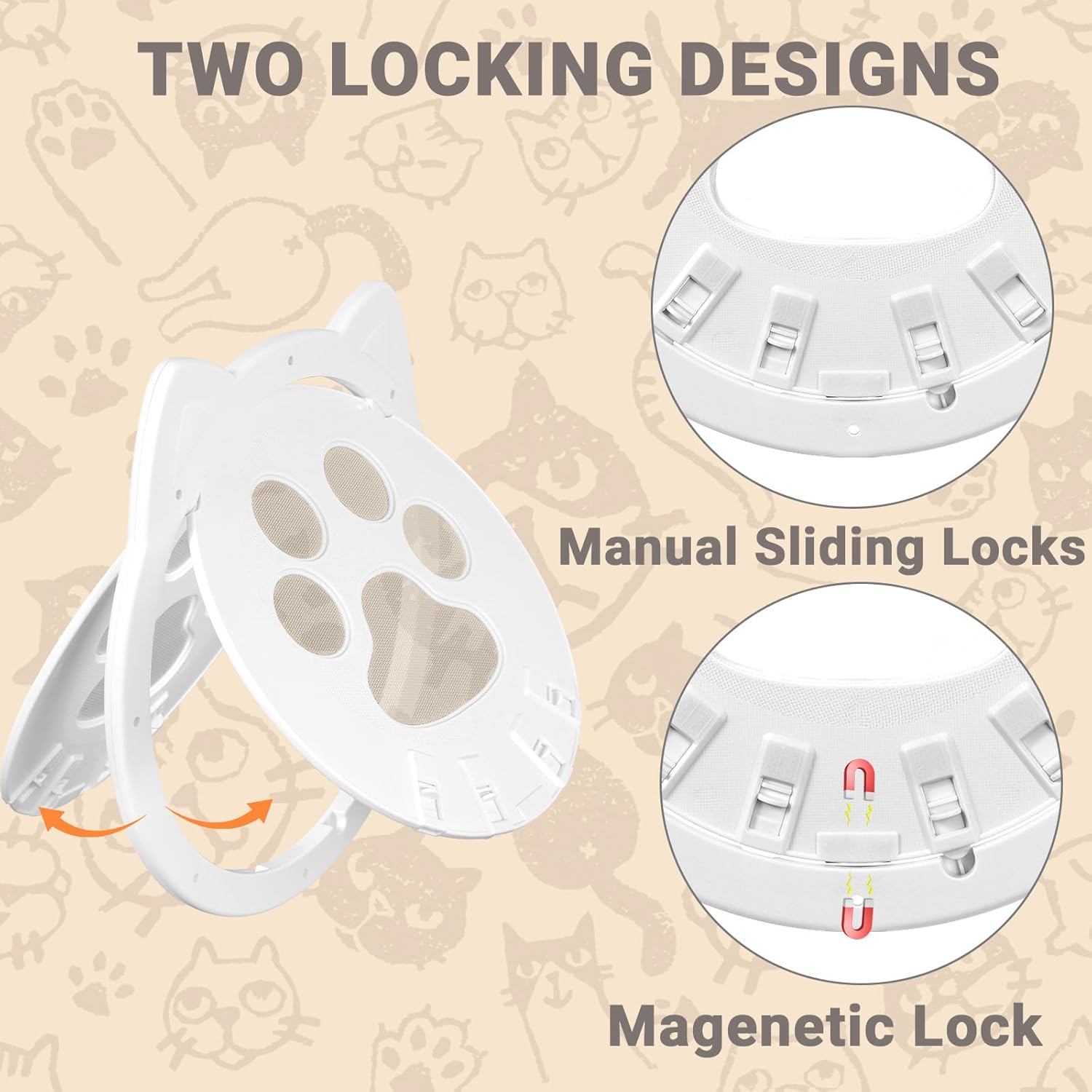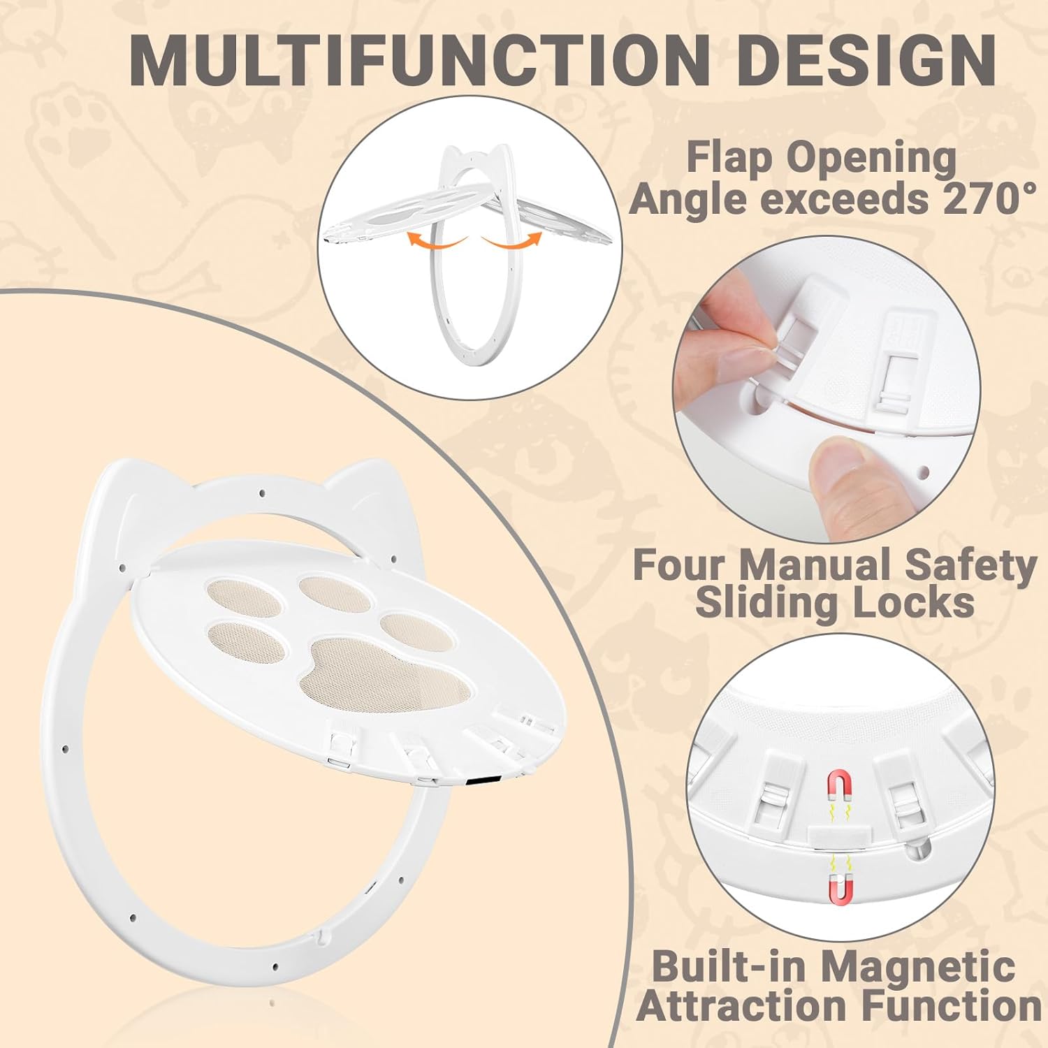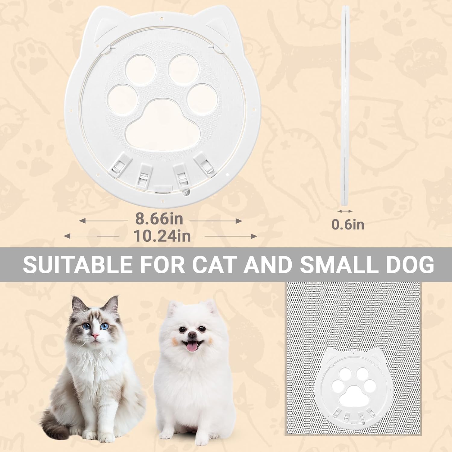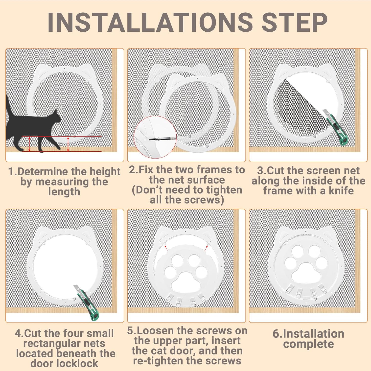 About this item Design for the Cat Lovers' Home: Linastu Cat Screen Door features a playful paw print pattern on the flap, merging functionality with unique style. Perfect for pet owners seeking a decorative cat door for screen door that complements home aesthetics Magnetic Auto-Seal Technology: Dual neodymium magnets ensure instant closure after pet entry. Silent operation won’t disturb sleep while granting pets freedom through this pet screen door Slide Lock Security: Manual locking mechanism secures this pet screen door at night or during travel. Prevents stray animal entry while keeping curious pets safely indoors Size of The Cat Door: Frame size is (10.24"x10.24"), flap opening is (8.66"x8.66"), suitable for cats under 32 pounds 5-Minute Screen Door Install: Mount with just a screwdriver and utility knife! Suitable for interior/exterior screen door, window and any other screen areas. The packaging box indicates the installation process. No professional help needed › See more product details