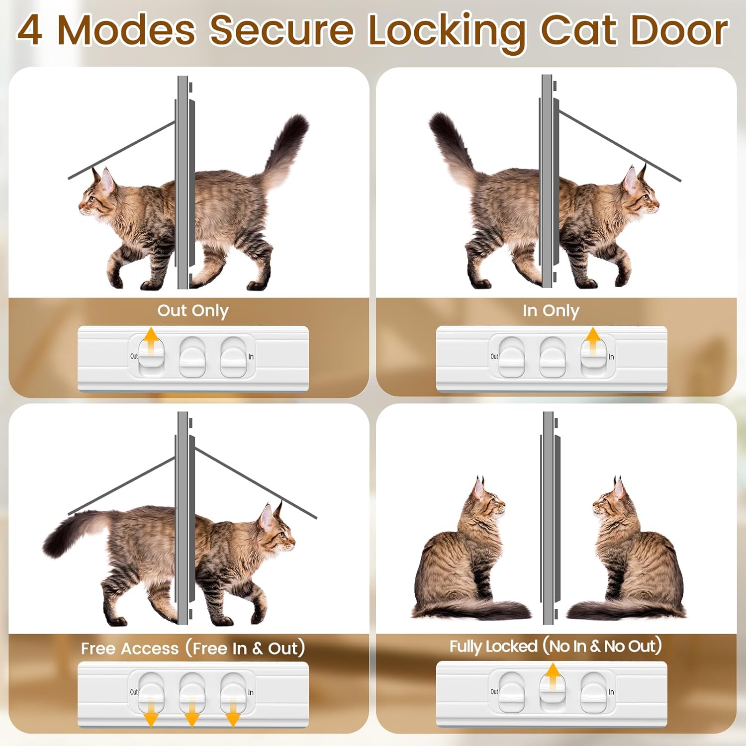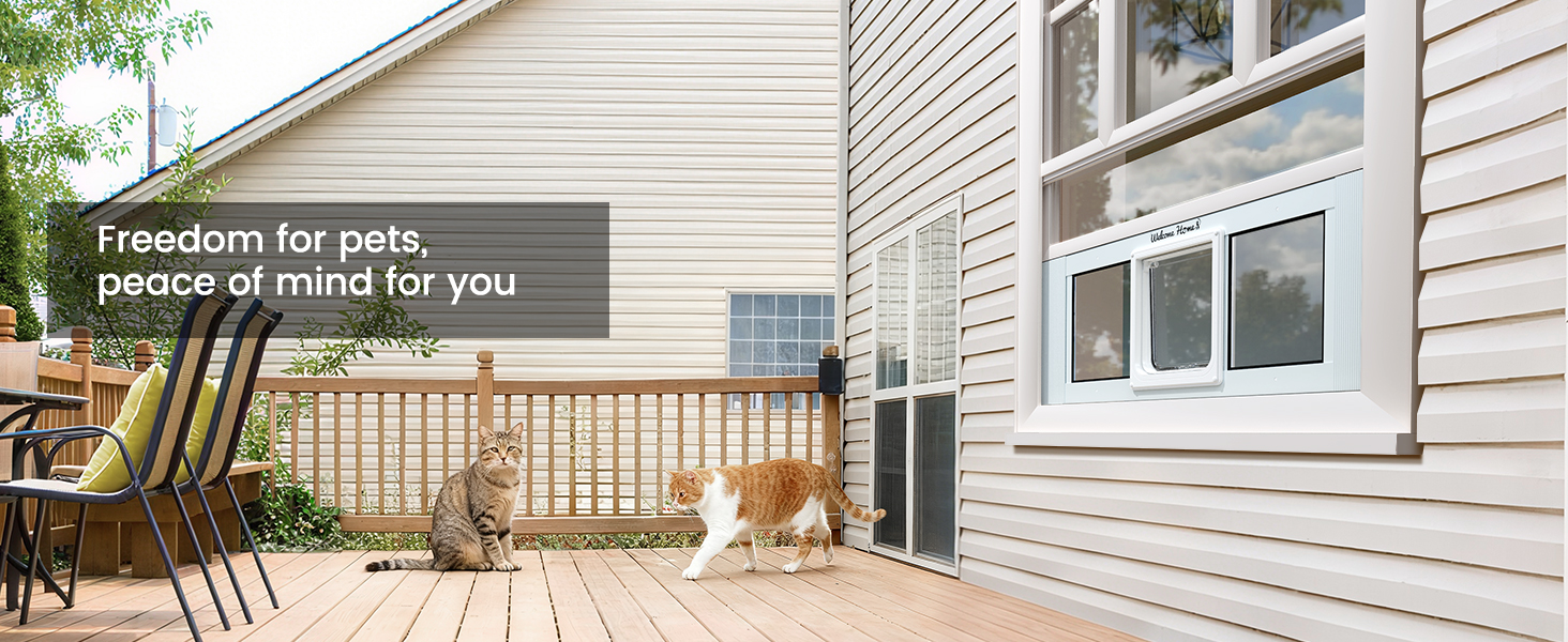 About this item 【4 Safety Locking Modes】Linvivon pet door for window with 4 secure locking independent modes: out only, in only, both in and out opening, and fully locked; You can free set up your pets in or out access when you're not home or during bad weather 【Adjustable & Magnetic Design 】The cat door window insert fits most standard sliding windows adjustable width of 27"-32", the min width 27" and max opening width 32", you can choose suitable width as needed. This window pet door bottom feature with magnetic closure to ensure that cat doors can quickly return to its original position after each use. (Note: Please measure the window width and track thickness according to the provided method before purchasing) 【Easy Install in Minutes】This cat window door is perfect for who wants a no-damage setup.Just pop it into your sliding window track, no drilling, no tools needed. Package with foam buffer and windproof strip, you can stick it on the edge of the window frame to enhance the sealing and prevent scratching the door frame 【Built for All-Weather Use】Our pet doors for cats made with heavy-duty aluminum alloy frames and HD glass window. The weather-resistant materials that not only hold up in rain, wind, snow, sun but prevent insects and dust,keeps the elements out while letting your cats move in and out comfortably 【Let Your Cat Come and Go Freely】High definition hard glass window cat door provides cats with clear outside visibility, gives your cats the freedom to explore the backyard or come inside for a nap—no more meowing at the window › See more product details
