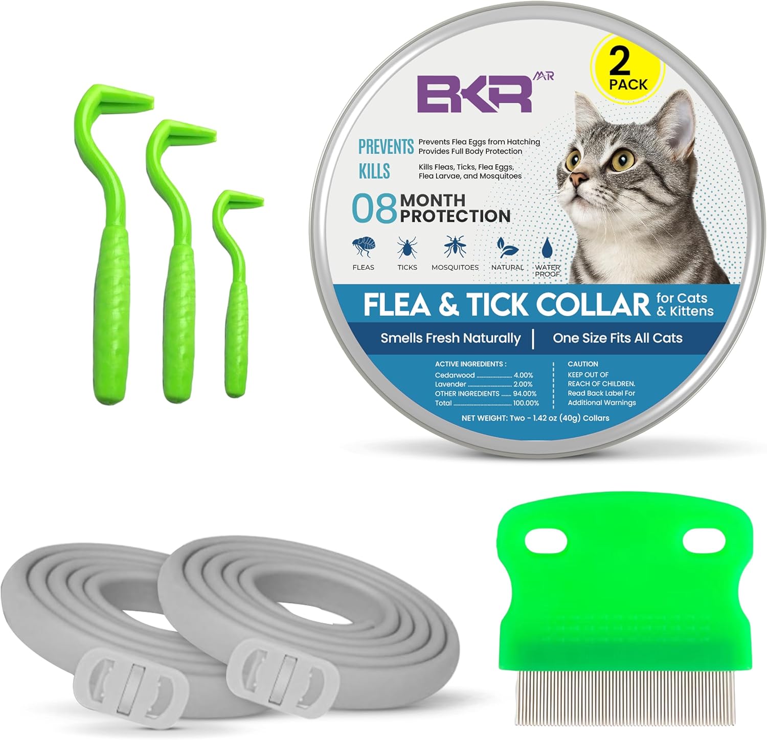 About this item MULTI-PROTECTION FLEA & TICK COLLAR: Protects cats from fleas, ticks, mosquitoes, and bites while also helping to reduce anxiety. Perfect for curious cats who explore both indoors and outdoors. SAFE & NATURAL INGREDIENTS: Made with carefully selected natural components to ensure complete safety for your cat without any harmful side effects. Reliable protection for your feline friend and peace of mind for you. LONG-LASTING 8-MONTH PROTECTION: Provides continuous, round-the-clock defense against fleas and ticks, keeping your cat safe and comfortable wherever they roam. Supports overall physical and mental well-being. WATERPROOF & DURABLE DESIGN: Advanced waterproof technology keeps the collar effective even during baths or rainy days. Built to resist wear and deformation for lasting durability. Comes individually packaged for easy storage and portability. ADJUSTABLE & COMFORTABLE FIT: Features an adjustable buckle to easily customize the fit for cats of all sizes and ages. Just fasten, secure, and trim the excess for a snug, comfortable fit that lasts. › See more product details