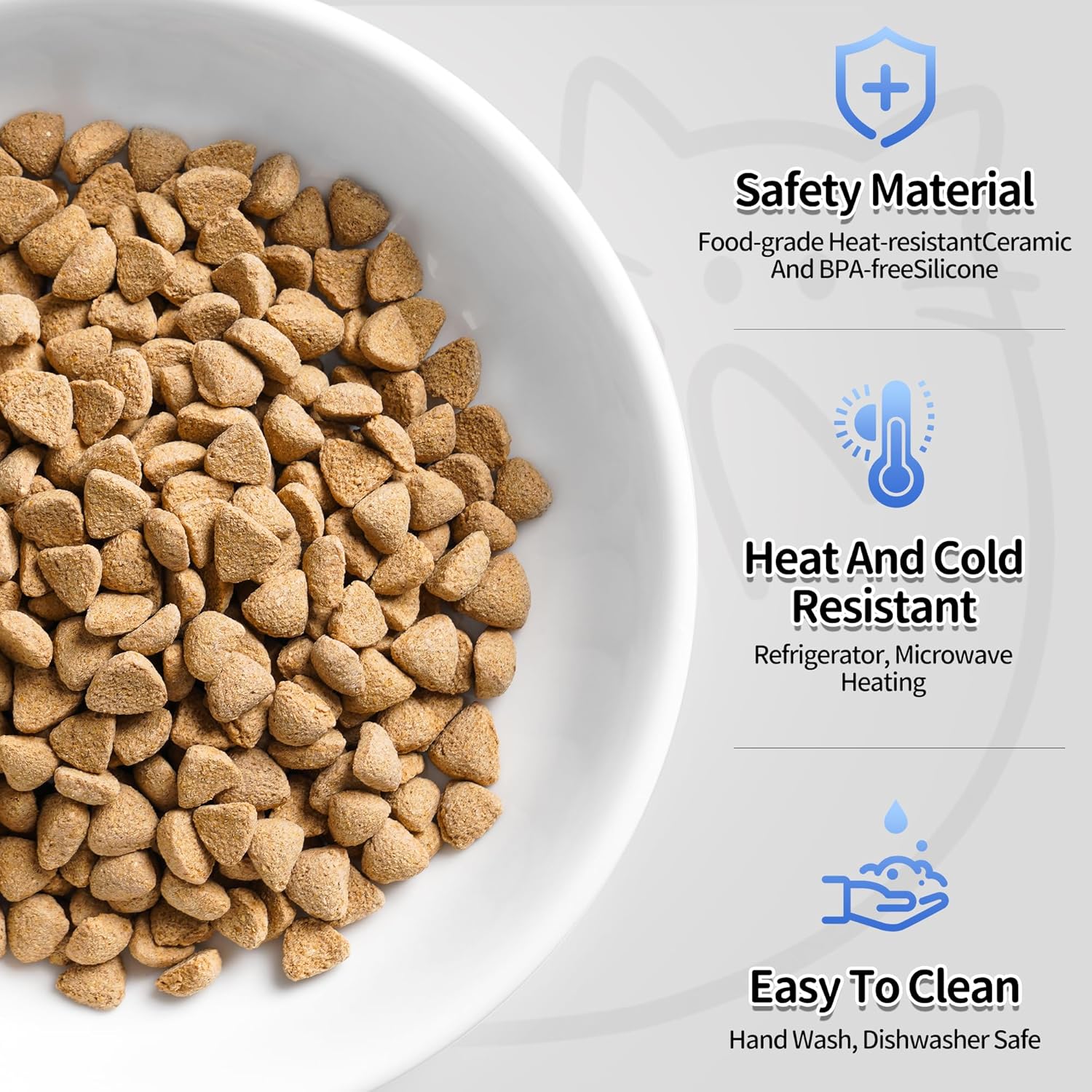 About this item 【Anti-Slip Bottom】 – Designed with a silicone Bottom, our ceramic cat bowl stays firmly in place, preventing sliding or tipping. It provides a quiet dining experience and protects your floors from scratches. 【Whisker-Friendly Design】 – With its wide and shallow shape, this bowl prevents whisker stress by keeping your cat’s whiskers from touching the sides, ensuring comfort and cleanliness while eating. 【Safe & Durable Materials】 – Made of premium food-grade ceramic, these bowls are heat-resistant, non-toxic, odorless, and microwave-safe, making them easy to clean and safe for daily use. 【Deeper Capacity Design】-This cat bowl is suitable for cats of all sizes as well as other small pets. It can be used both indoors and outdoors, and the upgraded deeper capacity holds more food to meet your pet’s daily needs. 【Size & Capacity】 – Each set includes 3 bowls with cute fishbone patterns, measuring 5.9" in diameter and 1.3" in height, with a 12 oz capacity ideal for cats and small pets. › See more product details