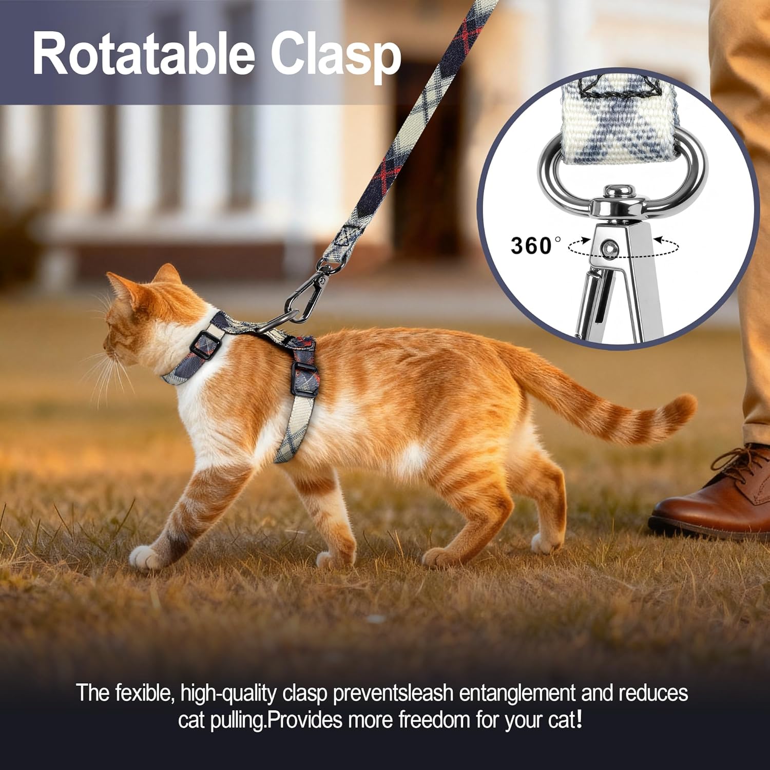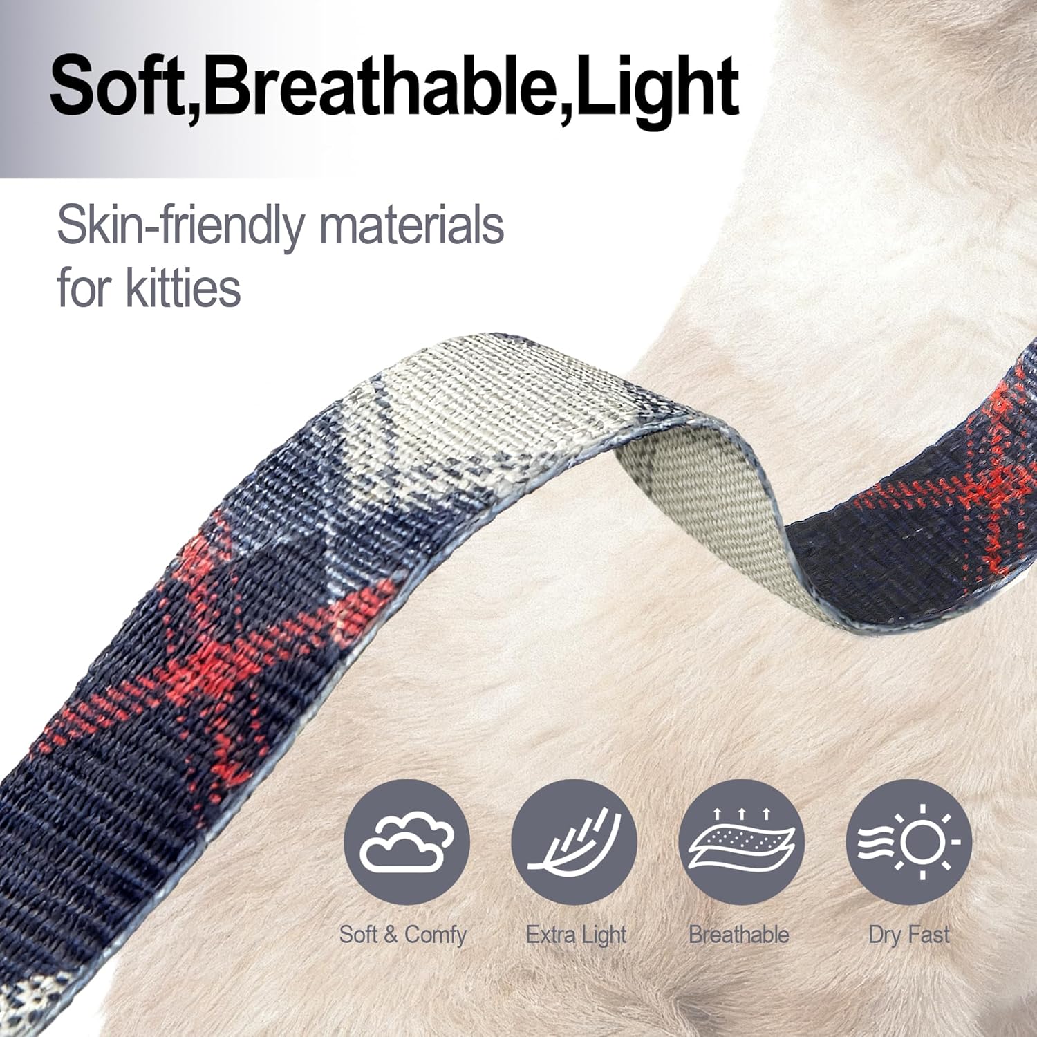 This cat harness is made of nylon material. It is lightweight, soft, breathable, wear-resistant, easy to clean and odorless. The ABS quick-release buckle is easy to adjust and switch. It has a wide range of size adjustments and can be conveniently adjusted to both large and small cats. The simple H-shaped design reduces the pressure on the cat's neck and back, preventing it from slipping or restricting its movement. Bright colors can make cats easily spotted and prevent them from getting lost.