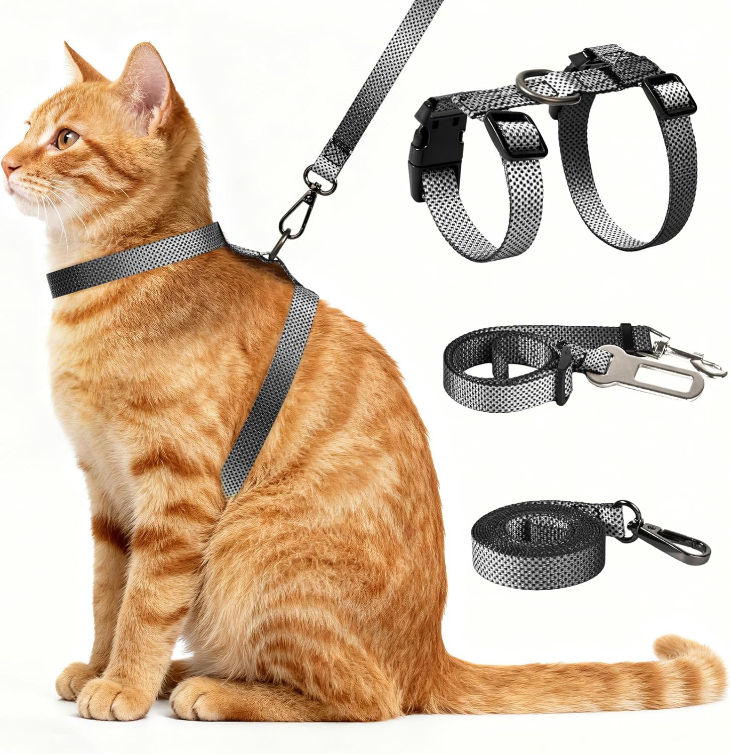 This cat harness is made of nylon material. It is lightweight, soft, breathable, wear-resistant, easy to clean and odorless. The ABS quick-release buckle is easy to adjust and switch. It has a wide range of size adjustments and can be conveniently adjusted to both large and small cats. The simple H-shaped design reduces the pressure on the cat's neck and back, preventing it from slipping or restricting its movement. Bright colors can make cats easily spotted and prevent them from getting lost.