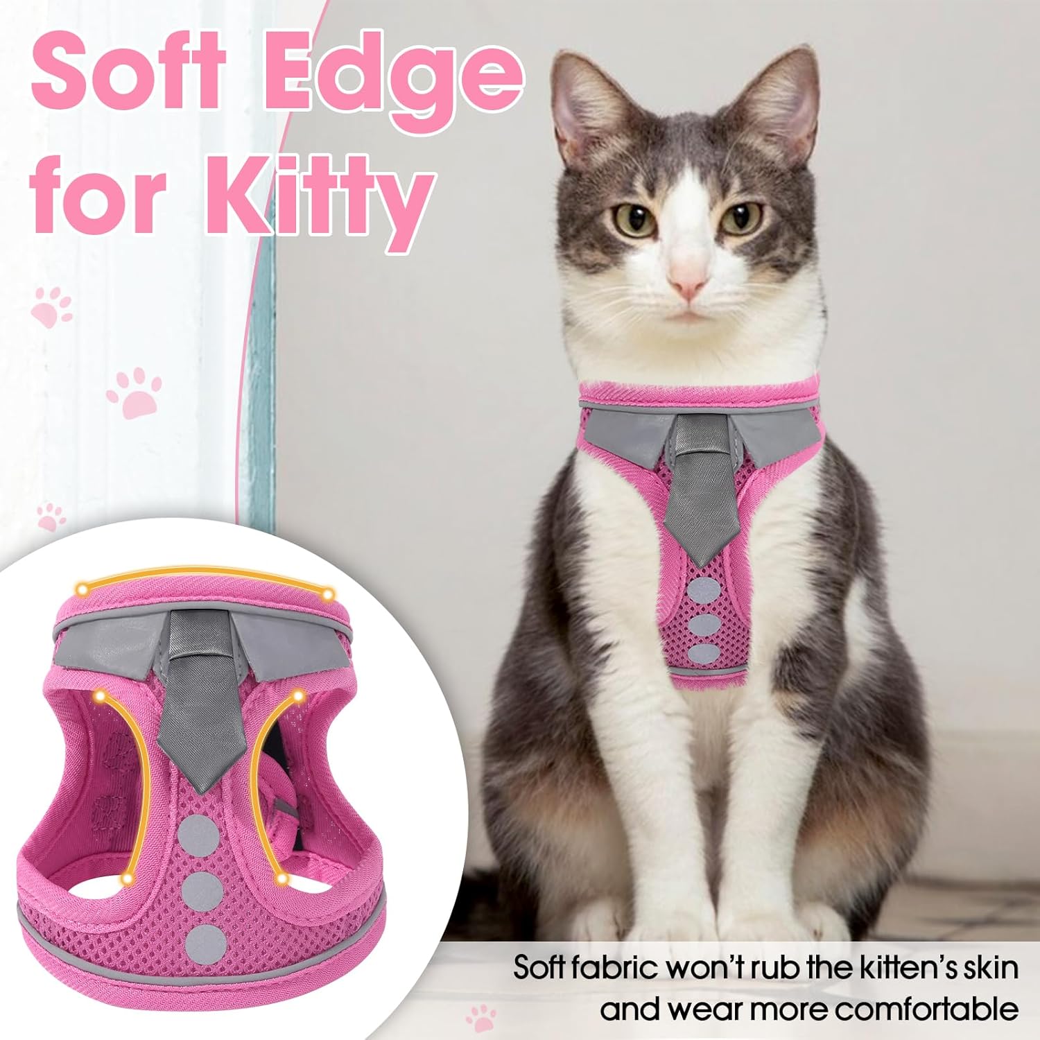 About this item Eye-catching Design: our harness for kitten is uniquely designed with a cute tie. Wearing our cat harness,your cat or dog will looks more elegant. Your kitten instantly transforms into a handsome gentleman and is sure to attract attention when taking pictures or walking outside Bright Reflective Strip: Our cat vest harness and leash with reflective strip makes cat visible in low light conditions and improves safety when walking at night. Definitely a reward for increased security Easy to Wear: The step in kitten harness and leash set has a buckle ,which can be worn quickly and safely. The adjustable belt allows you to quickly customize the vest for the small frame of the dog and cat, so that they will not slip easily Light and Breathable: The xs cat harness is made of soft and light mesh material, which can protect your pet firmly and safely, and will not bring great pressure and burden to your pet. What’s more, this material is breathable, which can keep warm in winter and cool in summer. It is comfortable enough for your pet to play more freely Escape-proof Cat Harness: Our ferret harness can wrap cats comfortably in 360 degrees. Suitable for daily walking, jogging, training, and any outdoor recreations. With NCMAMA escape-proof cat harness, it is easy to take the kitten to a strange place to travel, and no longer have to worry about the cat getting lost › See more product details