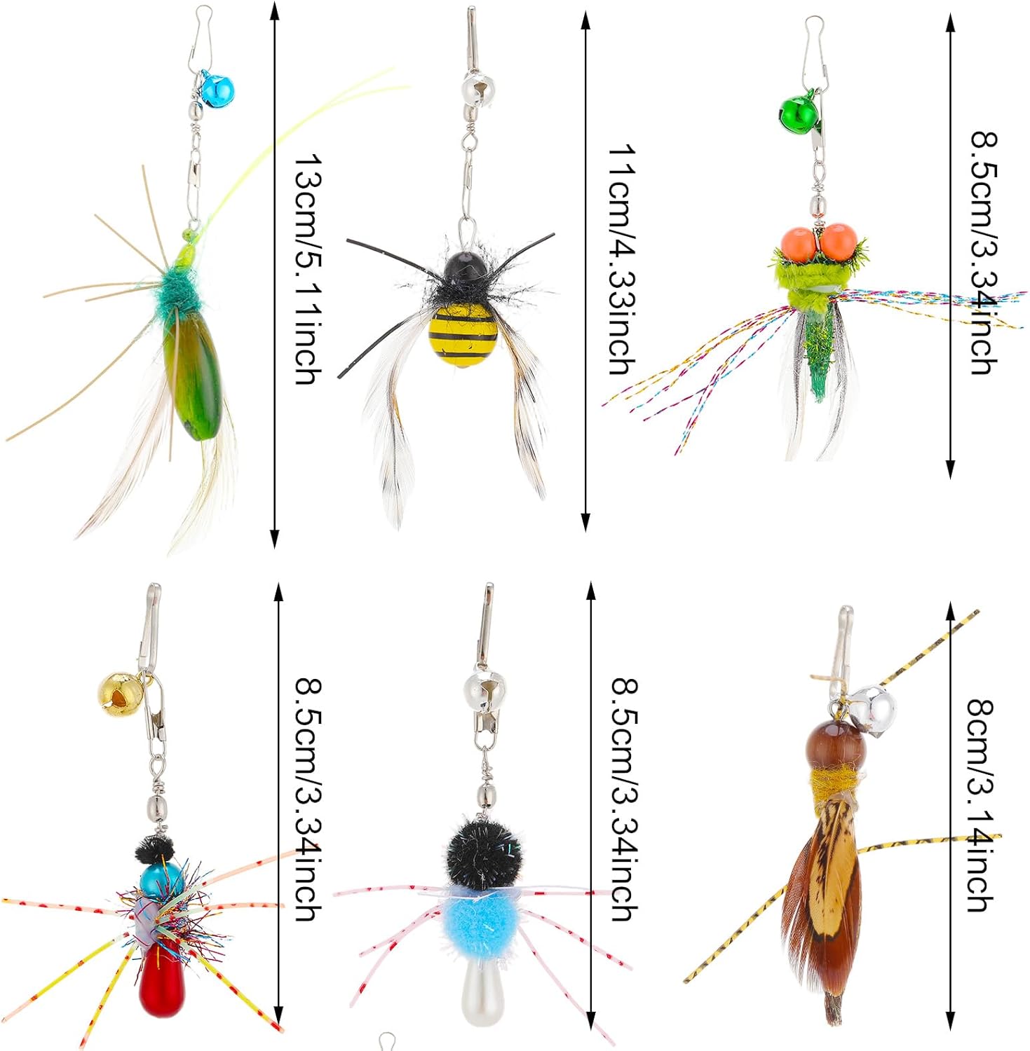 Features:Cat Wand Toy Attachments1.Small bell to attract cats attention easily.2.Easy to attach and remove from the wands with elastic rope.3. Funny interactive cat feather toys can build companionship between cats and owner.4. They are made of safe, high quality materials, it is ideal gift for cats.The cat wand replacement set is a perfect replacement for a feathered toy that has been broken by cats. Cats can have more toys without adding a wand.Package includes6 Pcs cat wand toys refills
