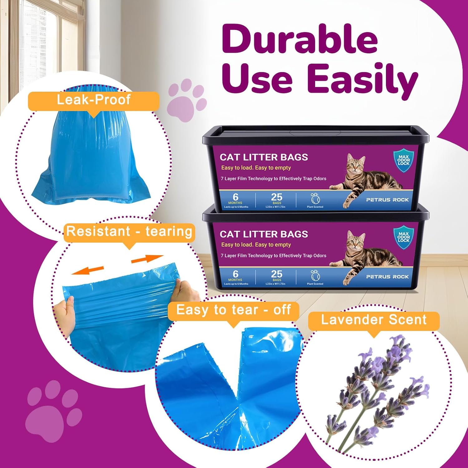 About this item Cat Litter Refill Bags – Only Fits Litter Genie Easy Roll Pail | No Mismatch, Perfect Fit Every Time Cat Litter Easy Roll Refill Bags – 2 Rolls (50 Bags) – 12+ Months Supply | Less Frequent Refills, More Convenience Litter Easy Roll Refill Bags – MAX Odor Control (7-Layer Barrier + Plant Scent) | Keep Home Odor-Free & Fresh Tear-Off Litter Easy Roll Refill Bags – Easy to Load & Empty | No Fuss, No Messy Hands Litter Easy Roll Refill Bags – Durable, Leak-Proof (Thick, Reinforced Plastic) | No Leaks, No Clean-Up Hassles › See more product details