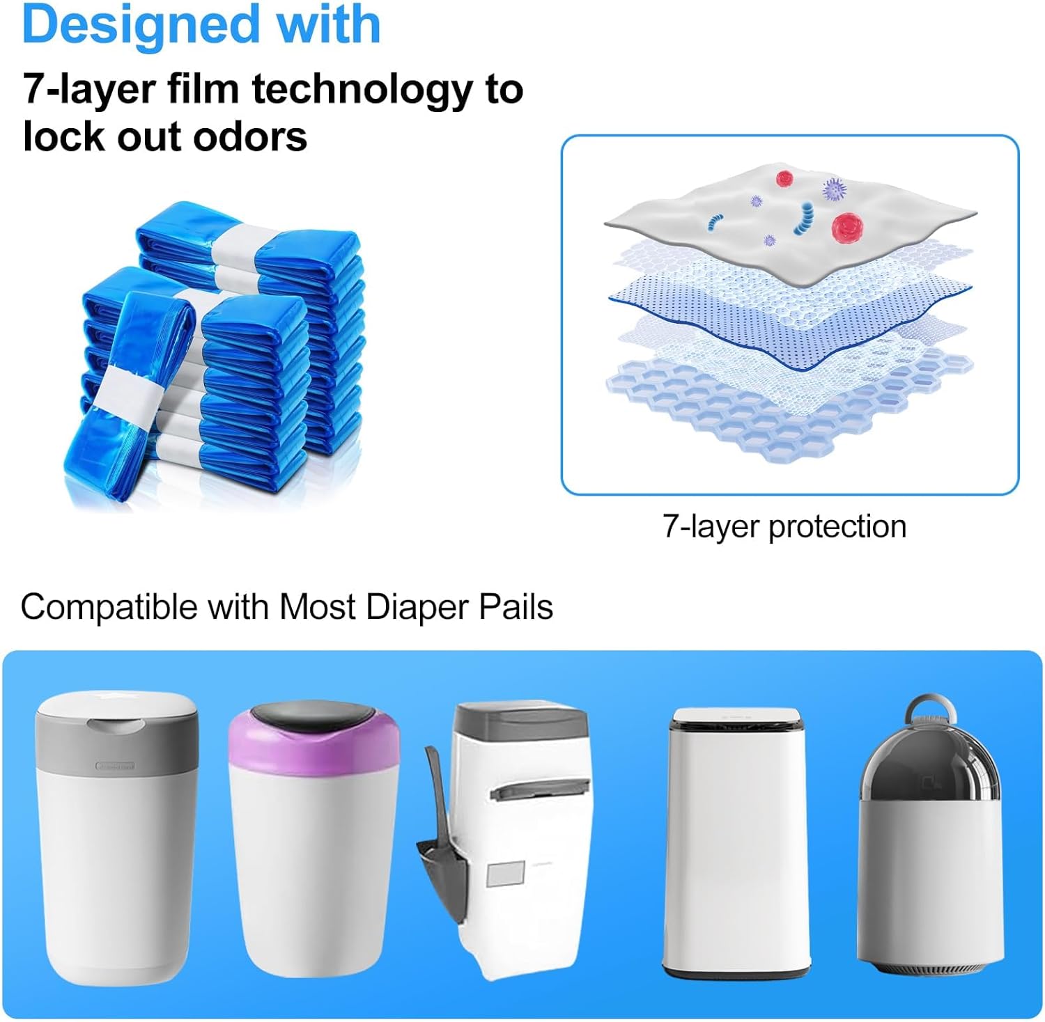 About this item Perfect Compatibility: Cat Litter Refill Bags Compatible With all Refill Bags and Diaper Refills. Premium quality: The diaper bin pail disposal bag is made of durable, tear-resistant, and waterproof new PE material, featuring an advanced 7-layer film design that prevents bacterial growth, making it suitable for daily use. cat litter bags Odor-free: The nappy bag is made of a material that can lock in odors to maintain the health of your family. Environmentally friendly and Easy To Use: These diaper pail refills are 100% recyclable and environmentally friendly. The litter box refills are easy to assemble, ensuring a hassle-free experience. Included Items: Cat Litter Refill Bags, Diaper Refills. Note: The Original refill cartridge is not included. › See more product details